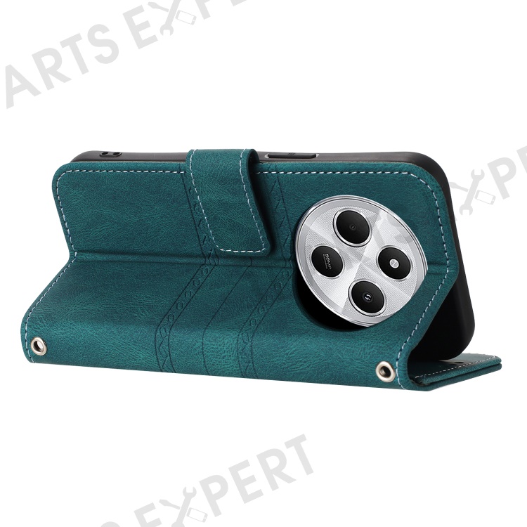 For Xiaomi Poco C75 4G / Redmi 14R 5G / 14C 4G Case Wallet PU Leather Imprinted Pattern Phone Cover - Blackish Green