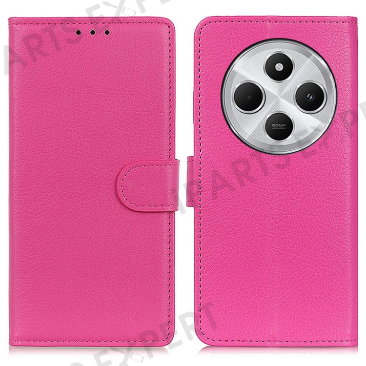 For Xiaomi Poco C75 4G / Redmi 14R 5G / 14C 4G Wallet Case PU Leather Phone Cover Litchi Texture - Rose