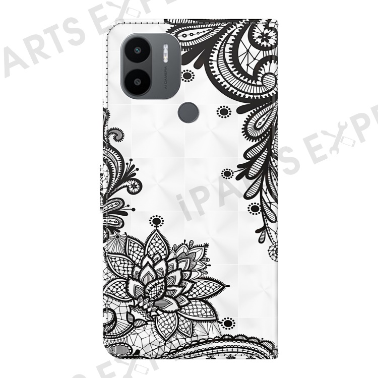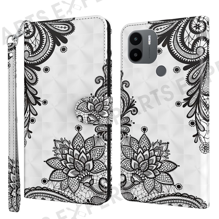 For Xiaomi Redmi A1 4G / A2 4G 3D Pattern Printing Wallet Phone Case PU Leather Wrist Strap Handbag Stand Feature Magnetic Flip Cover - Lace Flower
