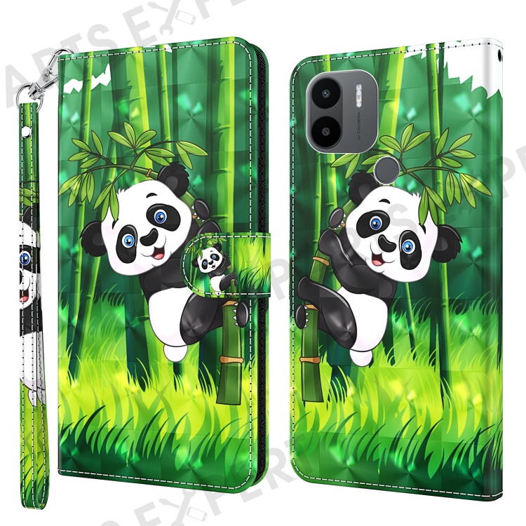 For Xiaomi Redmi A1 4G / A2 4G 3D Pattern Printing Wallet Phone Case PU Leather Wrist Strap Handbag Stand Feature Magnetic Flip Cover - Panda Climbing