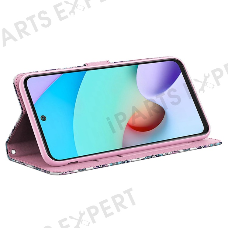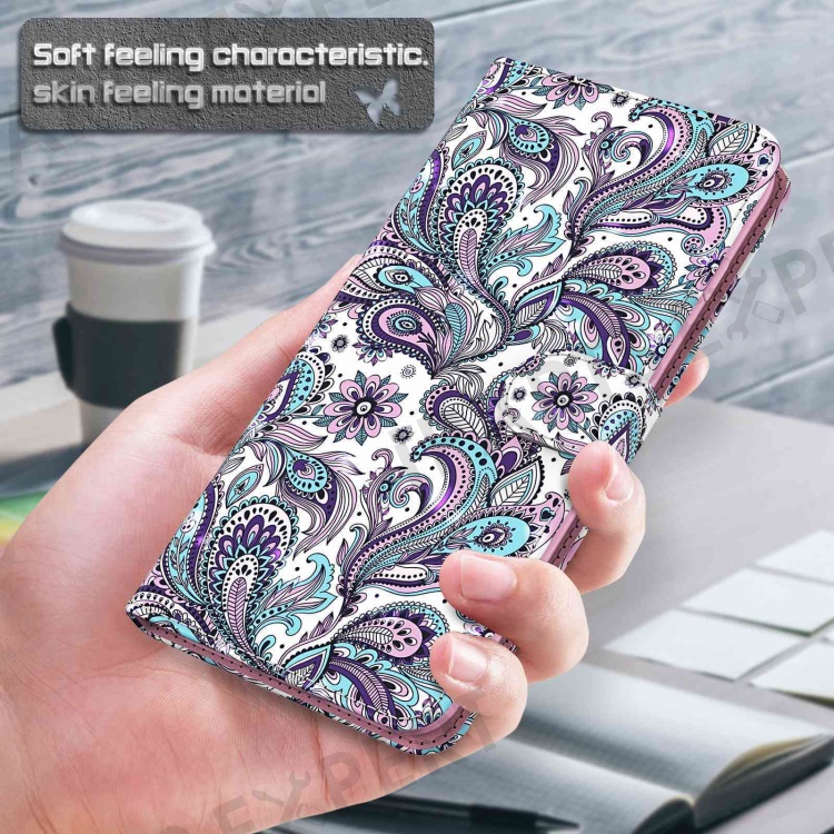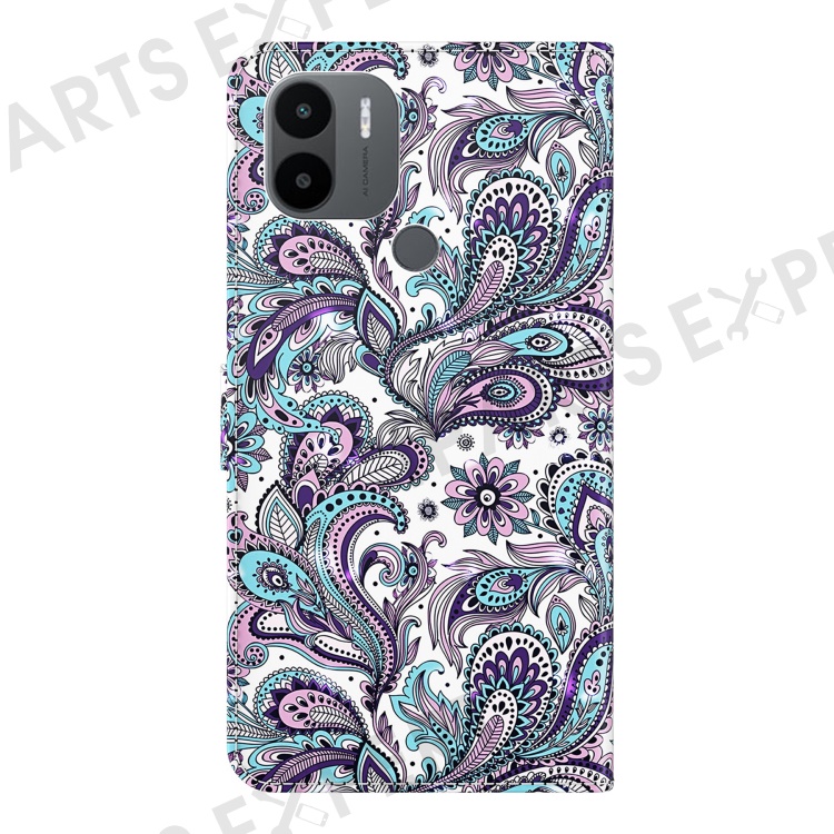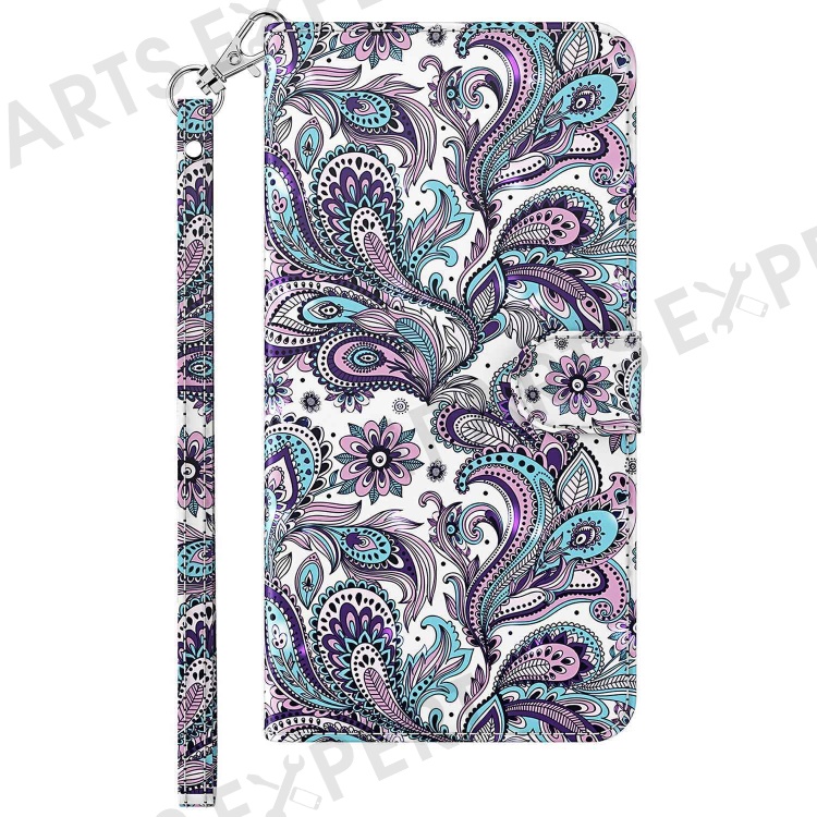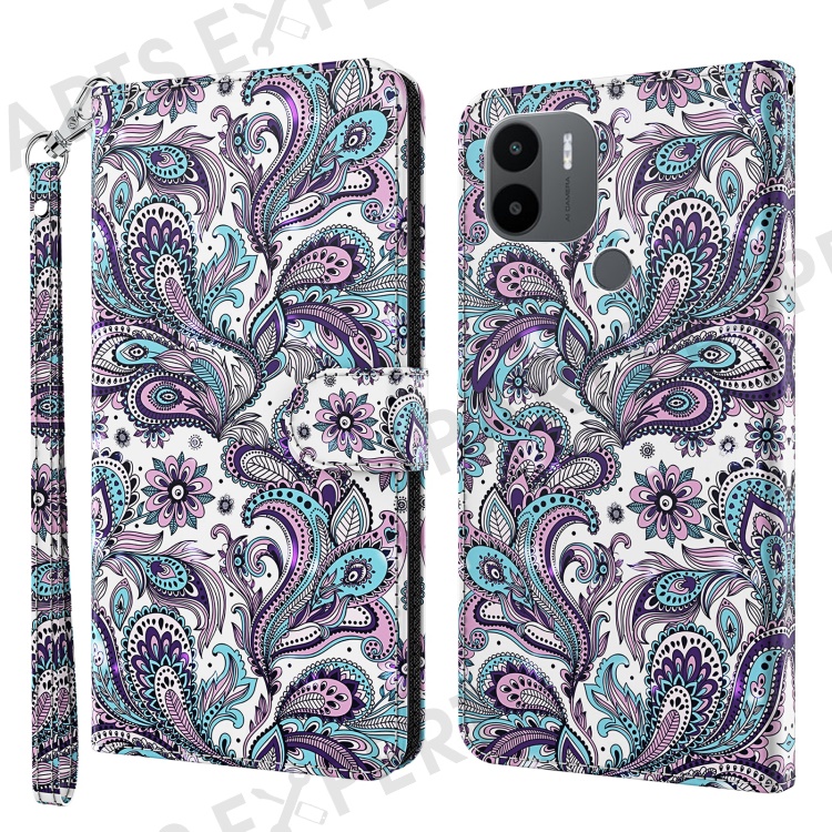 For Xiaomi Redmi A1 4G / A2 4G 3D Pattern Printing Wallet Phone Case PU Leather Wrist Strap Handbag Stand Feature Magnetic Flip Cover - Purple Impatiens
