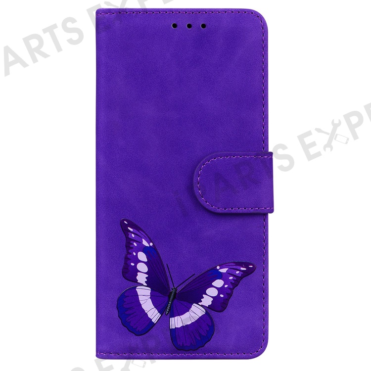 For Xiaomi Redmi A1 4G / A2 4G Phone Wallet Case, Butterfly Pattern Printing Anti-drop PU Leather Skin-touch Cover with Stand - Purple