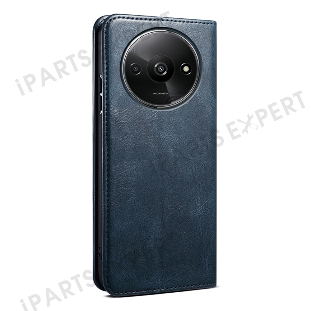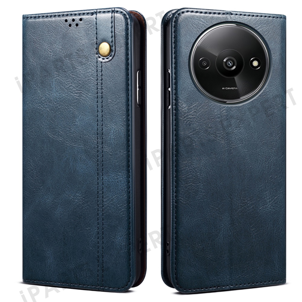 For Xiaomi Redmi A3 4G / Poco C61 4G Case Crazy Horse Texture Waxy Leather Wallet Stand Phone Cover - Blue