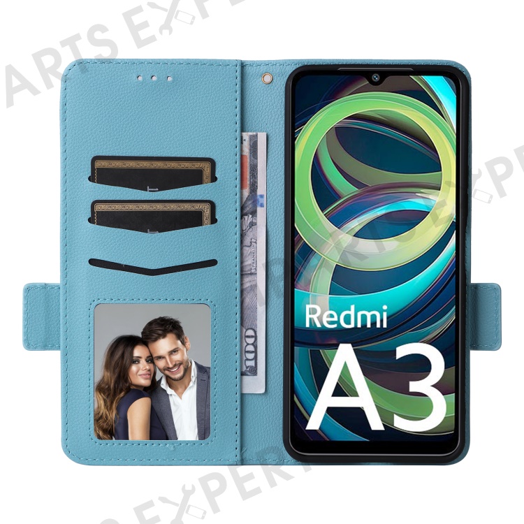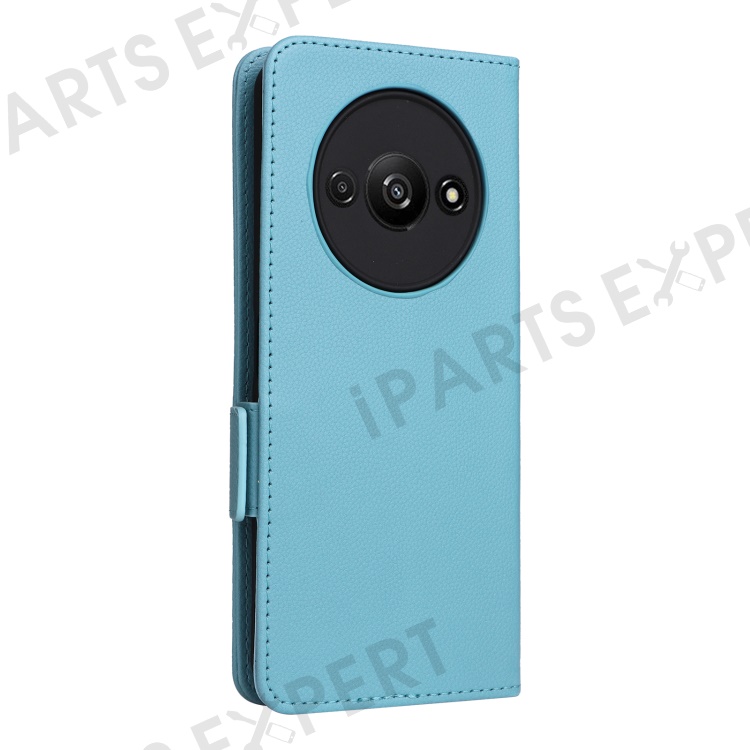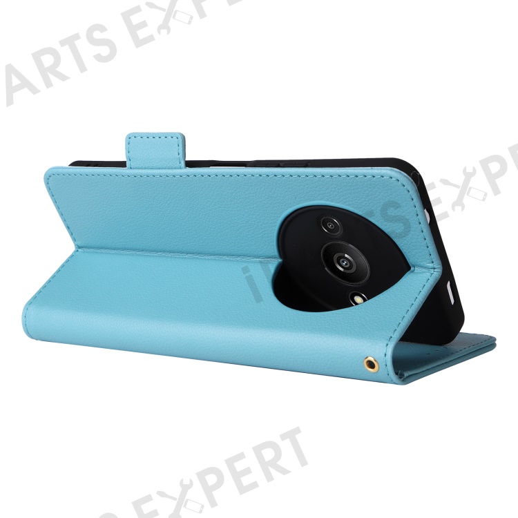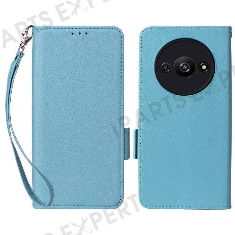 For Xiaomi Redmi A3 4G / Poco C61 4G Case with Wrist Strap Litchi Texture PU Leather Wallet Phone Cover - Baby Blue