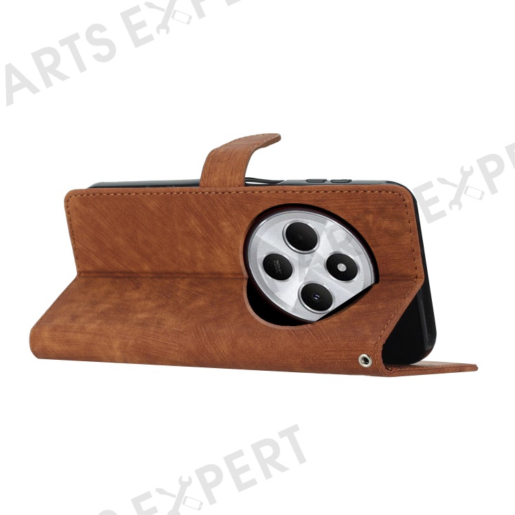 For Xiaomi Redmi A4 5G Case with Card Clots Skin-Touch PU Leather Phone Cover Stand - Brown