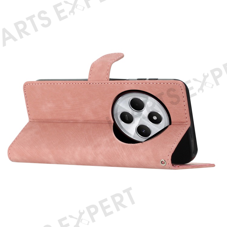 For Xiaomi Redmi A4 5G Case with Card Clots Skin-Touch PU Leather Phone Cover Stand - Pink