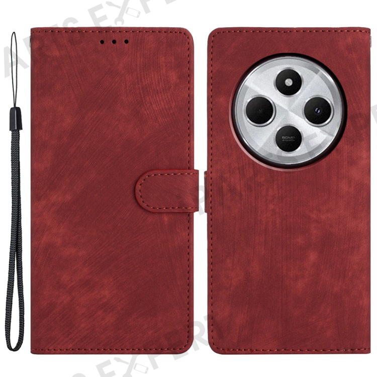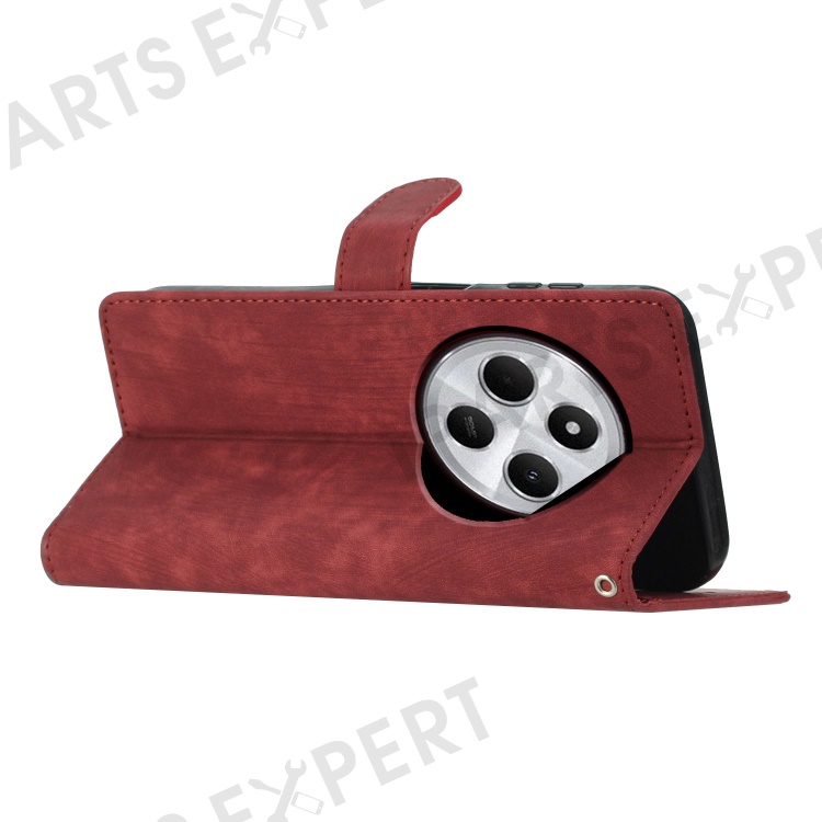 For Xiaomi Redmi A4 5G Case with Card Clots Skin-Touch PU Leather Phone Cover Stand - Red