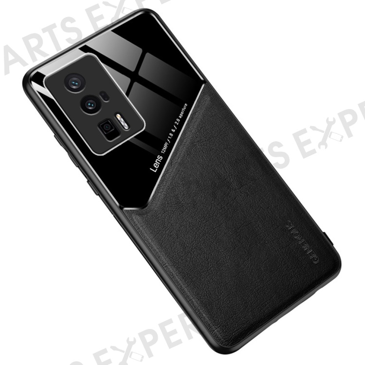 For Xiaomi Poco F5 Pro 5G / Redmi K60 Pro 5G / K60 5G Leather Coated TPU + PC Cover Magnetic Car Holder Phone Case - Black