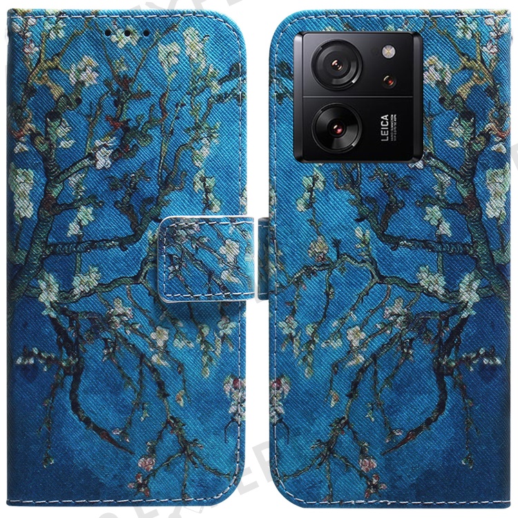 For Xiaomi Redmi K60 Ultra / 13T / 13T Pro Case PU Leather Stand Pattern Printing Phone Cover - Apricot Flowers