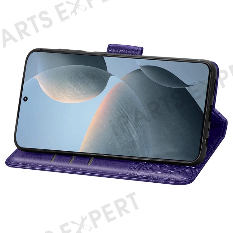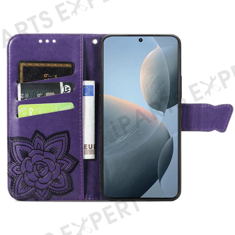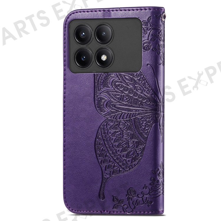 For Xiaomi Redmi K70E 5G / Poco X6 Pro 5G Phone Case Butterfly Pattern Folio Stand View Cover - Dark Purple