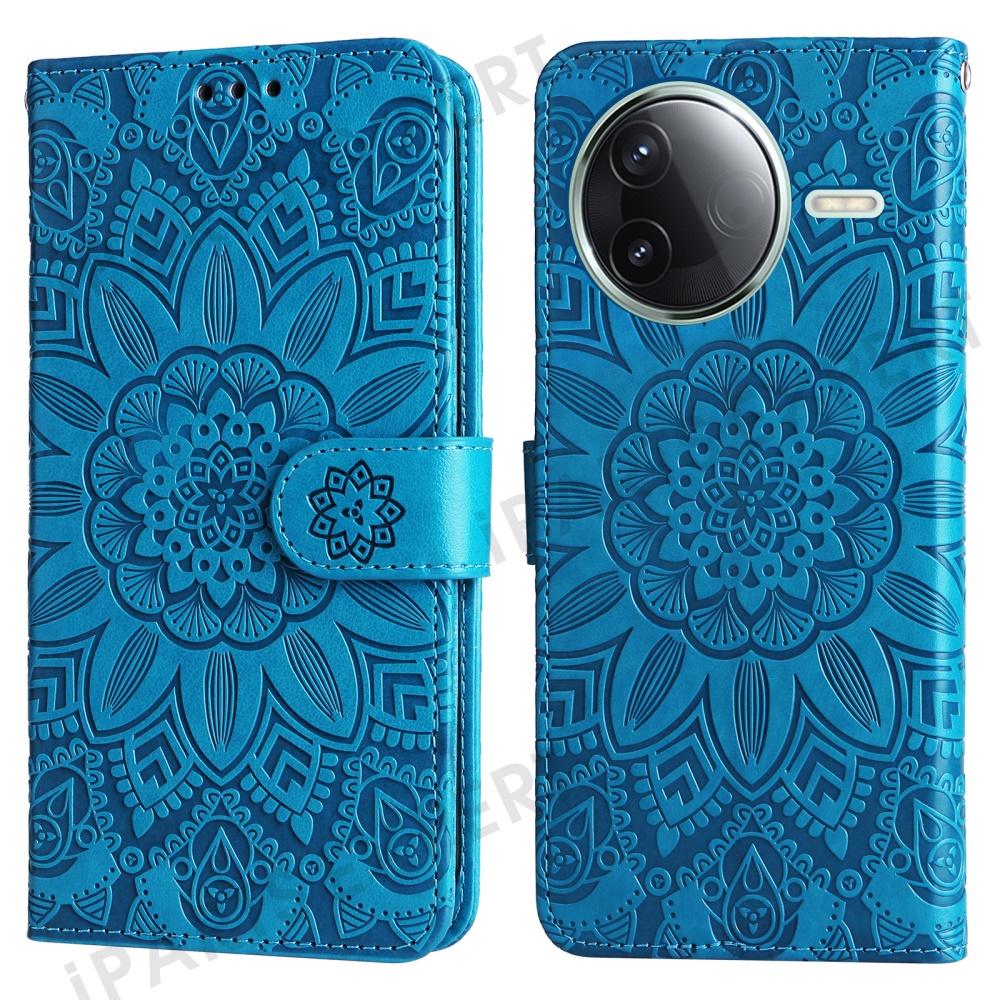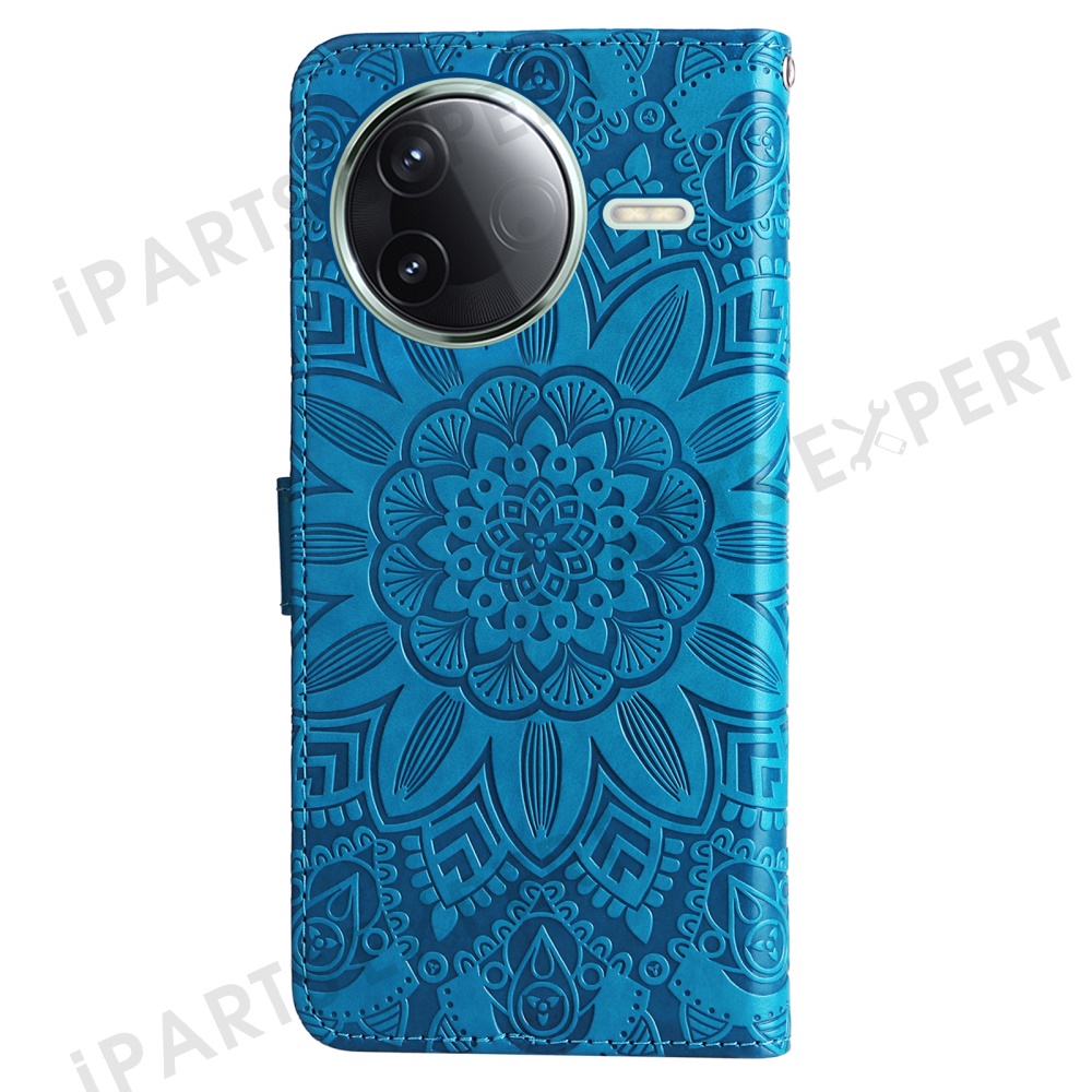 For Xiaomi Poco F7 Pro 5G / Redmi K80 5G Case Sunflower Imprint Leather Wallet Phone Cover - Blue