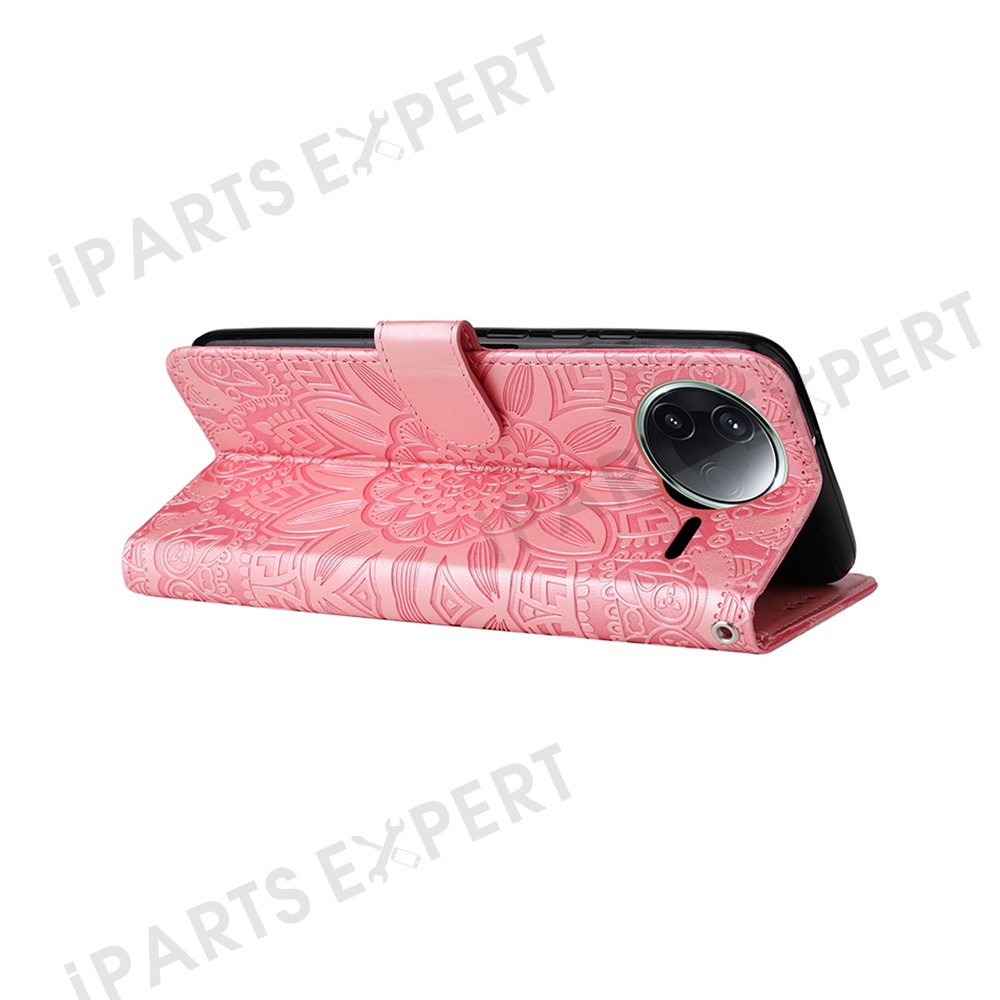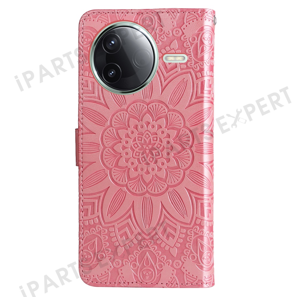 For Xiaomi Poco F7 Pro 5G / Redmi K80 5G Case Sunflower Imprint Leather Wallet Phone Cover - Pink