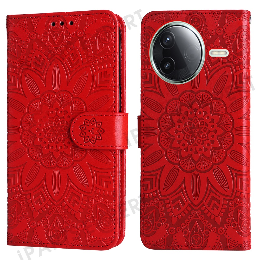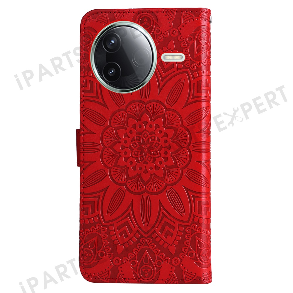 For Xiaomi Poco F7 Pro 5G / Redmi K80 5G Case Sunflower Imprint Leather Wallet Phone Cover - Red