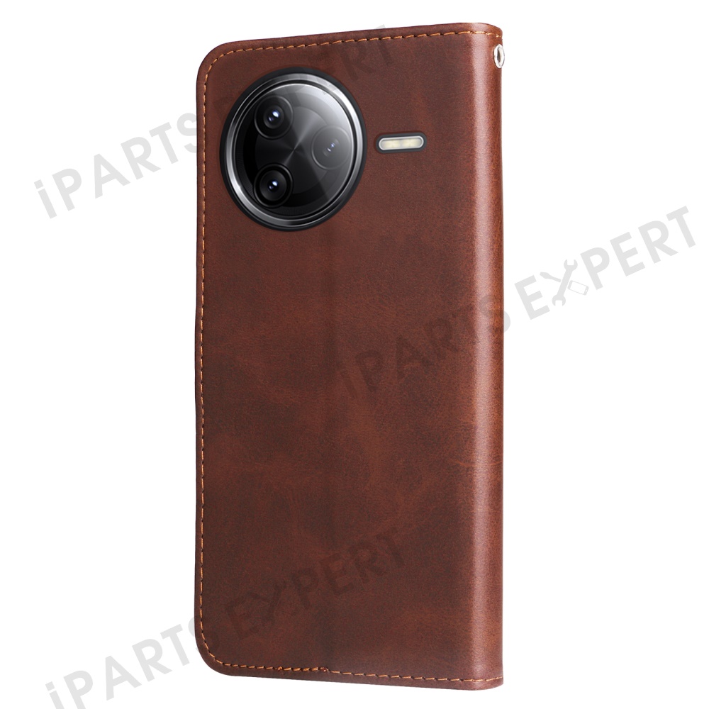 For Xiaomi Poco F7 Ultra 5G / Redmi K80 Pro 5G Case Zipper Wallet Calf Texture PU Leather Phone Cover - Brown