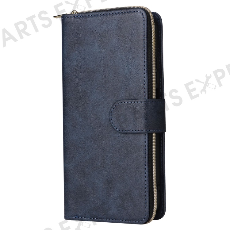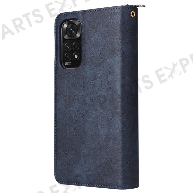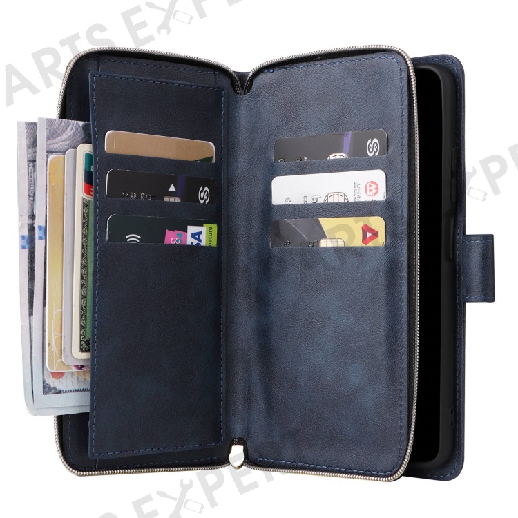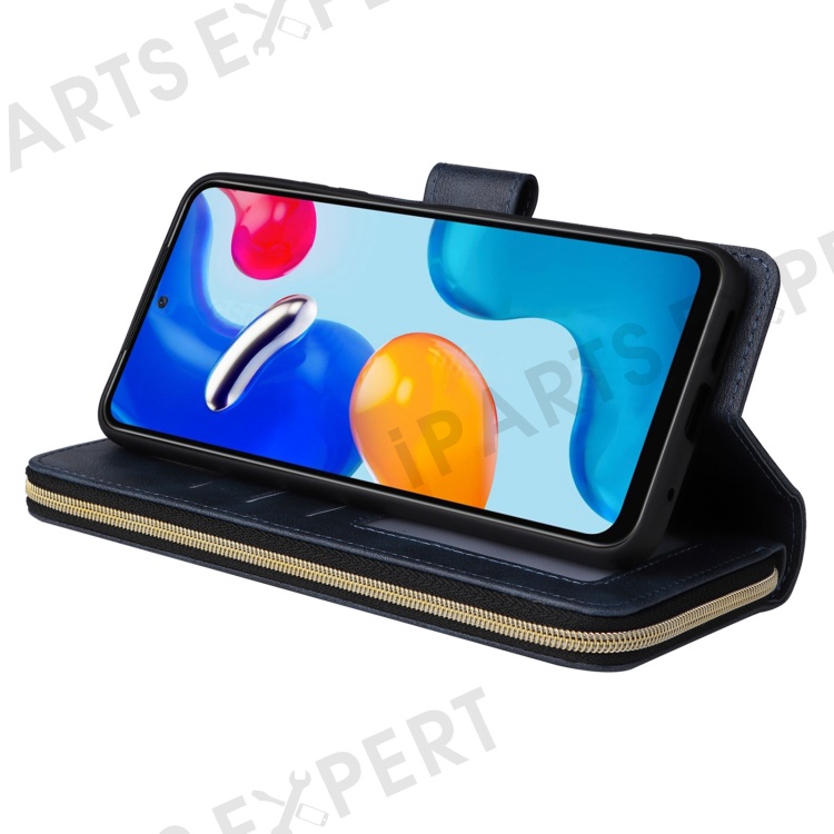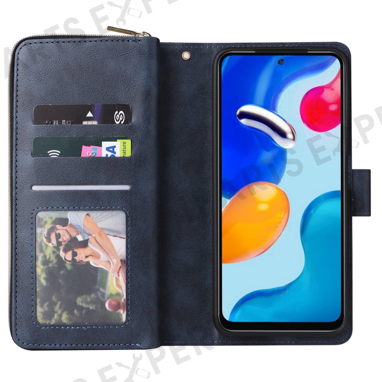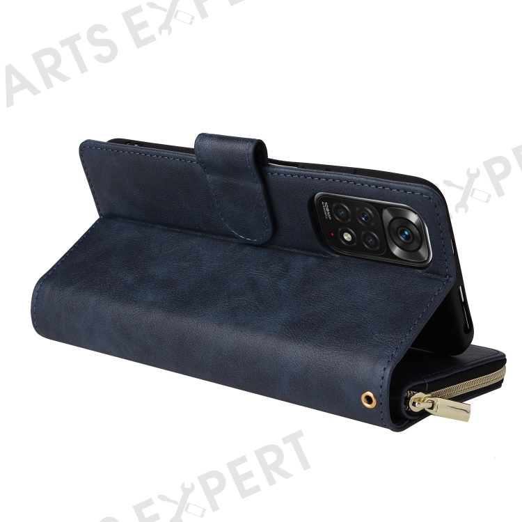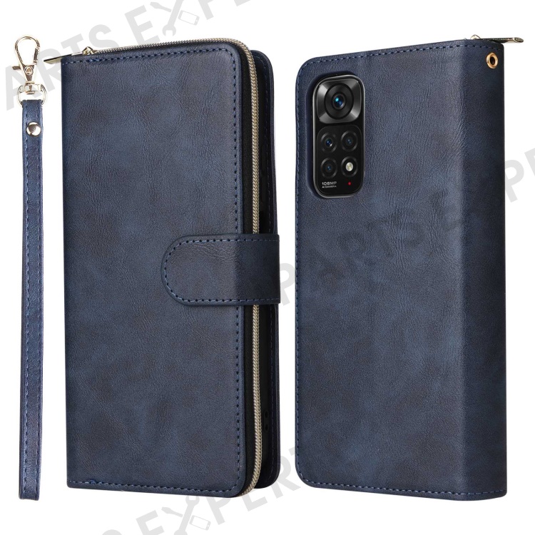 For Xiaomi Redmi Note 12 Pro 4G / 11 Pro 4G (MediaTek) / Note 11 Pro 5G (Qualcomm) / Note 11E Pro 5G PU Leather Zipper Pocket Case 9 Card Slots Flip Stand Cover with Strap - Blue