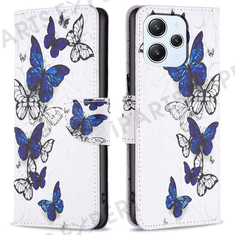 For Xiaomi Redmi 12 4G Leather Case Pattern Printing Wallet Stand Flip Mobile Cover - Butterflies