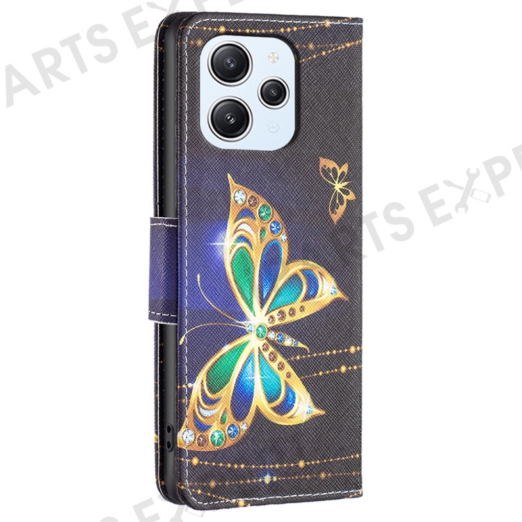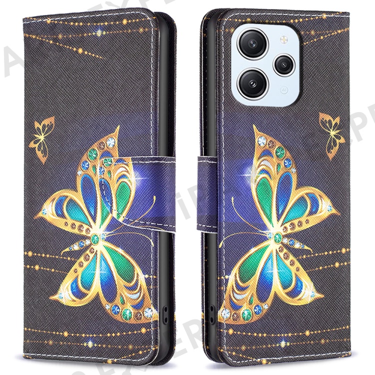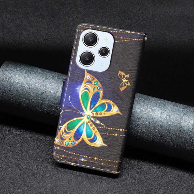 For Xiaomi Redmi 12 4G Leather Case Pattern Printing Wallet Stand Flip Mobile Cover - Jewelry Butterfly