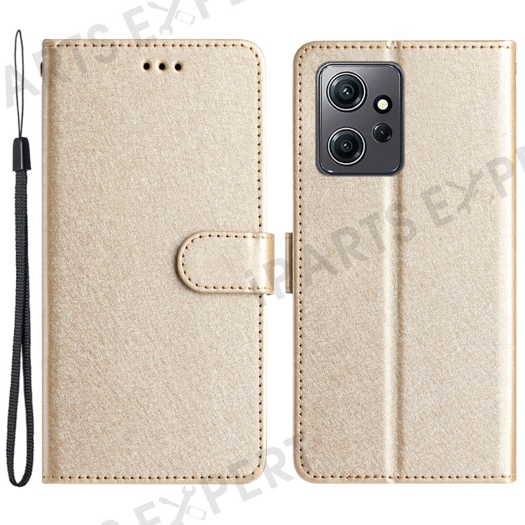 For Xiaomi Redmi Note 12 4G PU Leather Wallet Stand Case Silk Texture Protective Phone Cover - Gold