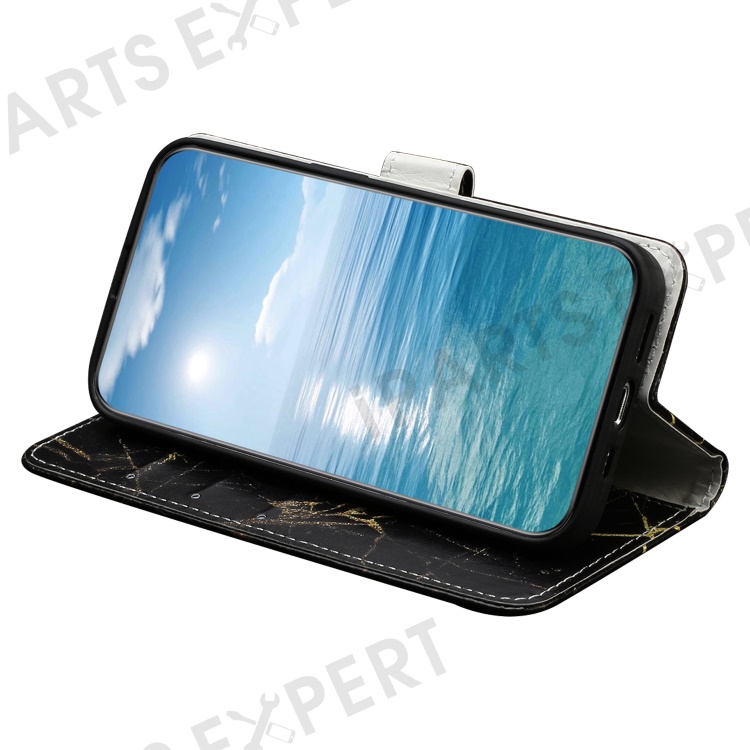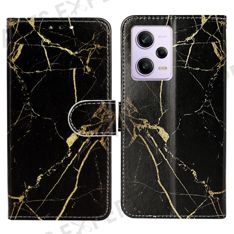For Xiaomi Redmi Note 12 Pro 5G / Note 12 Pro Speed 5G / Poco X5 Pro 5G Leather Phone Case Pattern Printing Flip Wallet Stand Cover - Black Gold Marble