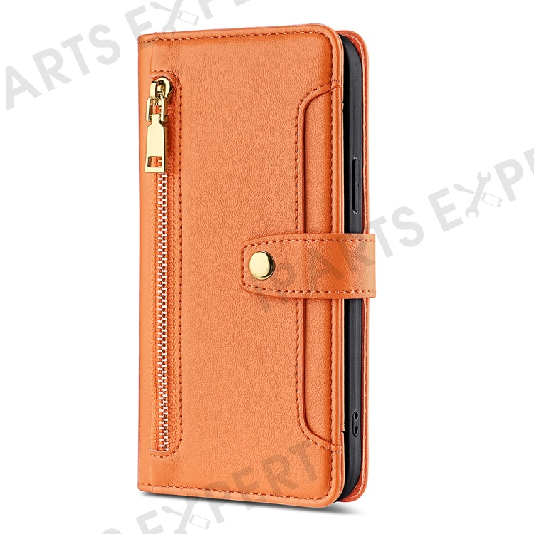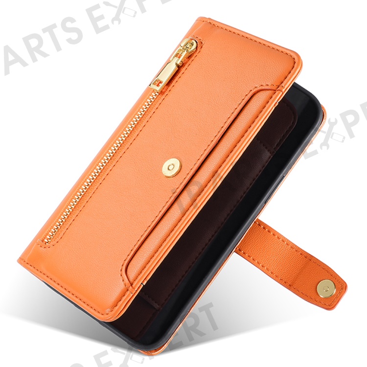 For Xiaomi Redmi Note 12 Pro Speed 5G / Note 12 Pro 5G / Poco X5 Pro 5G Zipper Pocket Phone Stand Case Leather Phone Cover with Straps - Orange