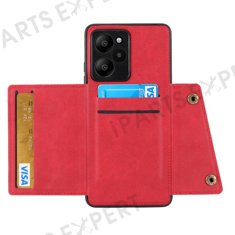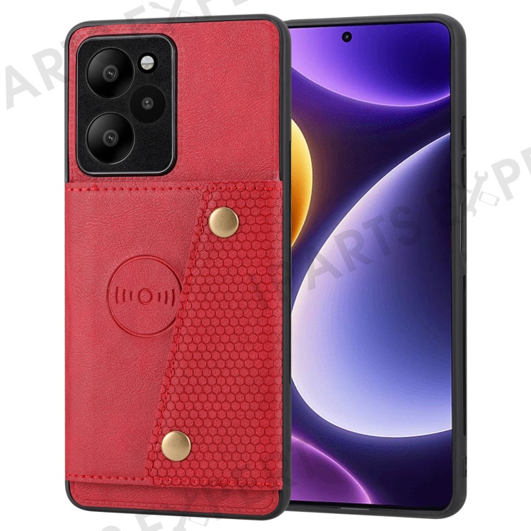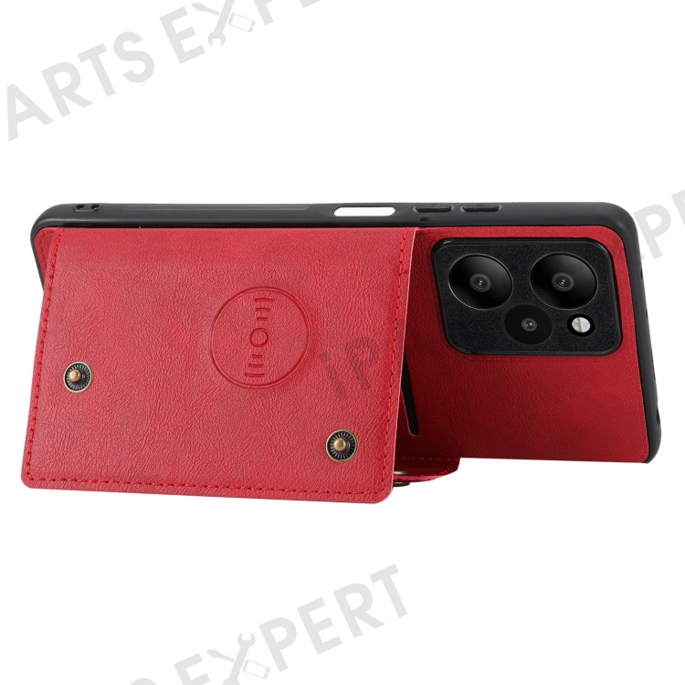 For Xiaomi Redmi Note 12R 5G Case PU Leather Coated TPU Phone Cover with Card Slots - Red