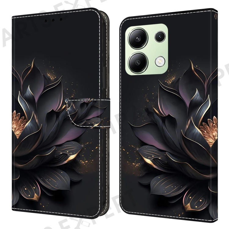 For Xiaomi Redmi Note 13 4G Leather Case 3D Pattern Printed Stand Wallet Phone Cover - Purple Lotus