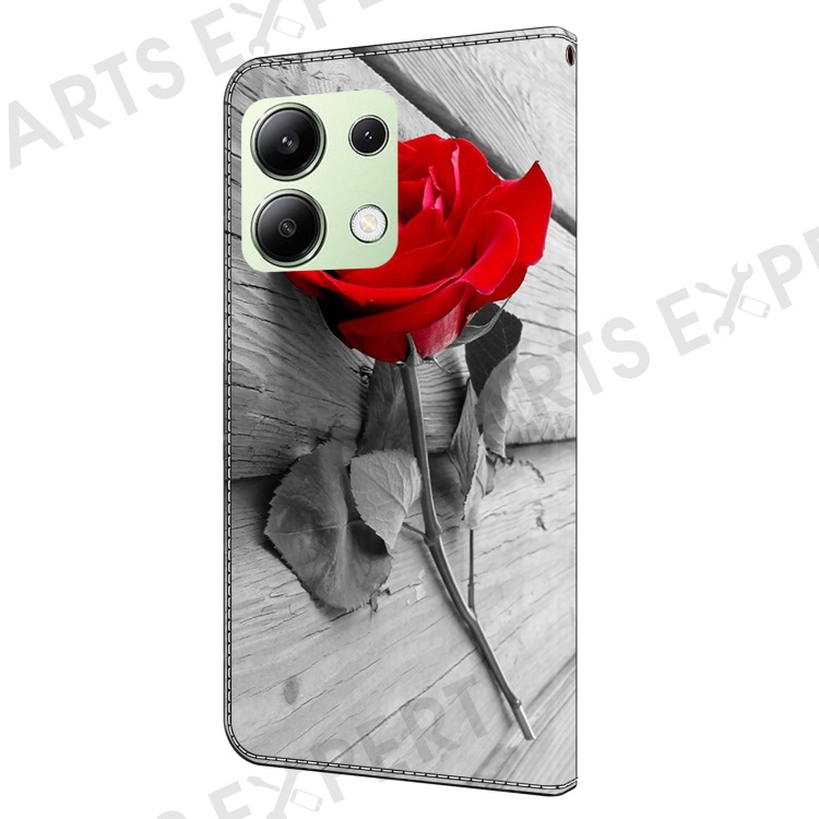For Xiaomi Redmi Note 13 4G Leather Case 3D Pattern Printed Stand Wallet Phone Cover - Rose