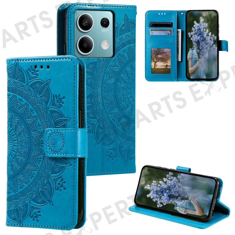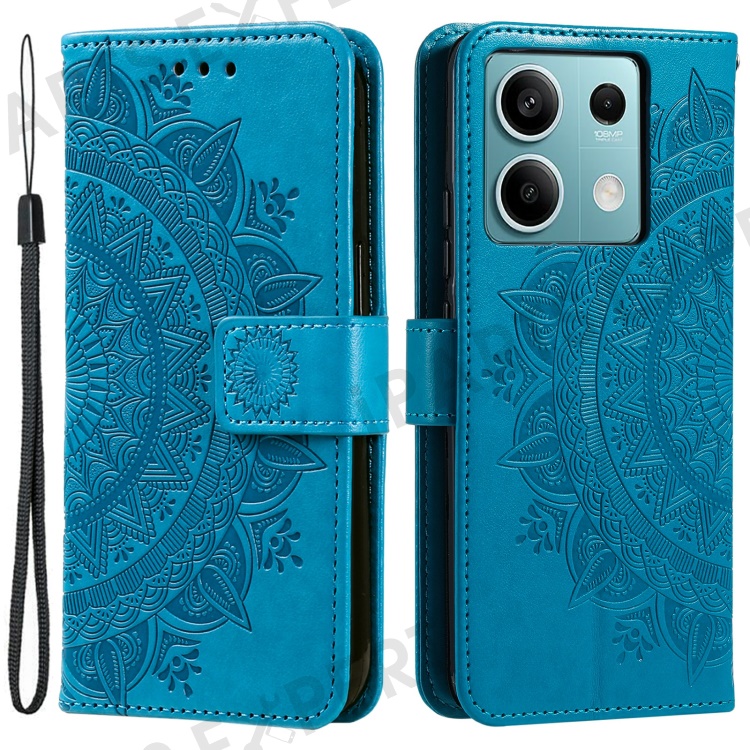For Xiaomi Redmi Note 13 5G Leather Case Mandala Flower Cover Magnetic Clasp - Blue