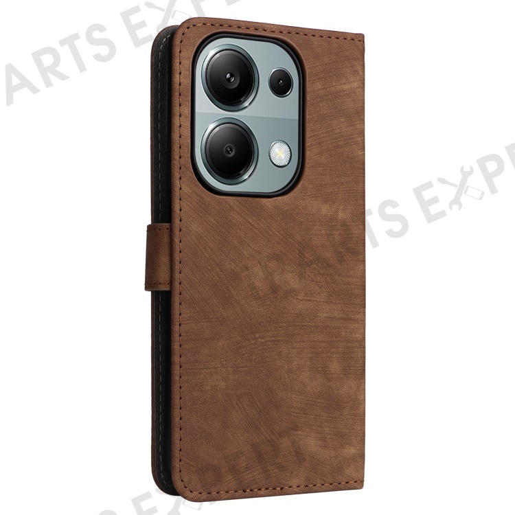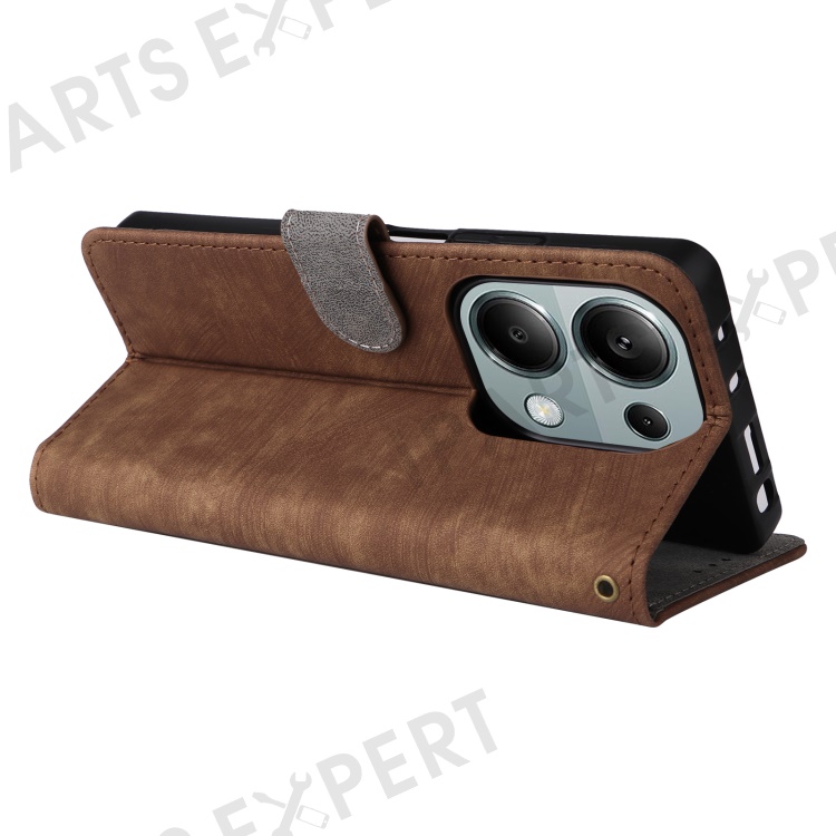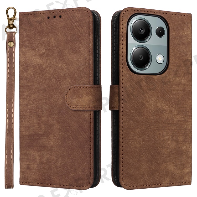 For Xiaomi Redmi Note 13 Pro 4G / Poco M6 Pro 4G / Note 14S 4G Case with Strap RFID Blocking PU Leather Cover Stand - Brown