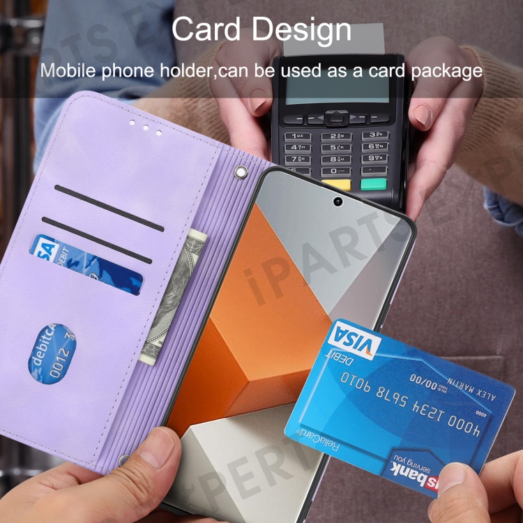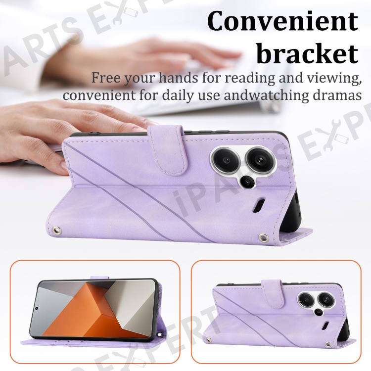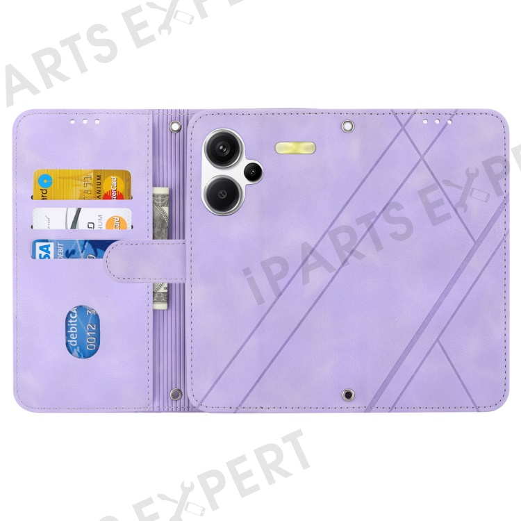 For Xiaomi Redmi Note 13 Pro+ 5G Case Imprinted Line Card Slots Shockproof Phone Cover - Purple