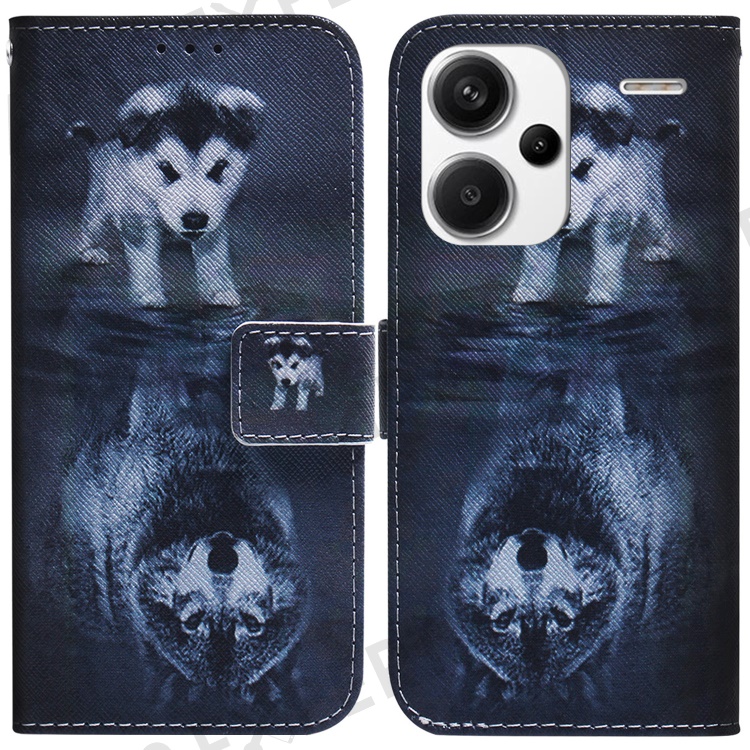 For Xiaomi Redmi Note 13 Pro+ 5G Flip Phone Cover Pattern Print Wallet Case - Dog and Wolf