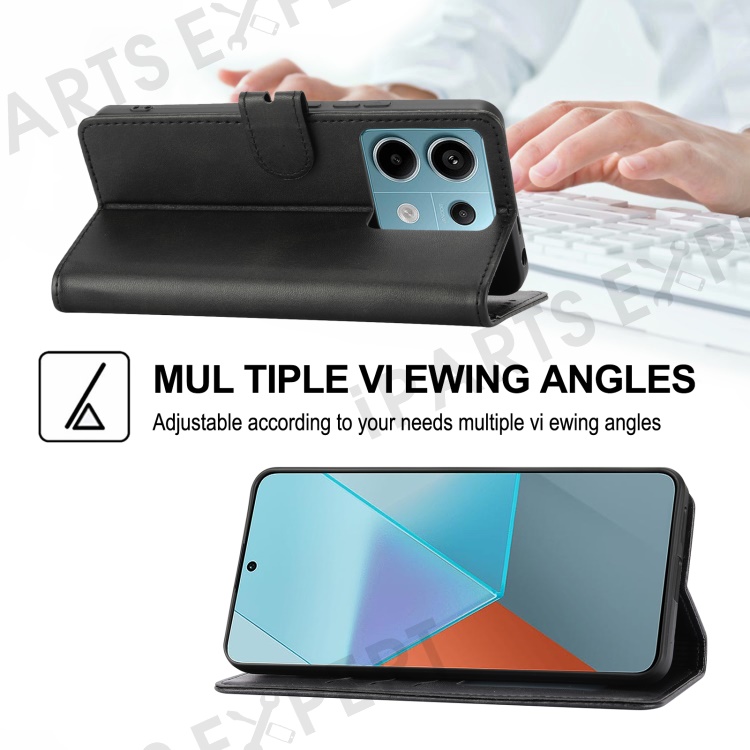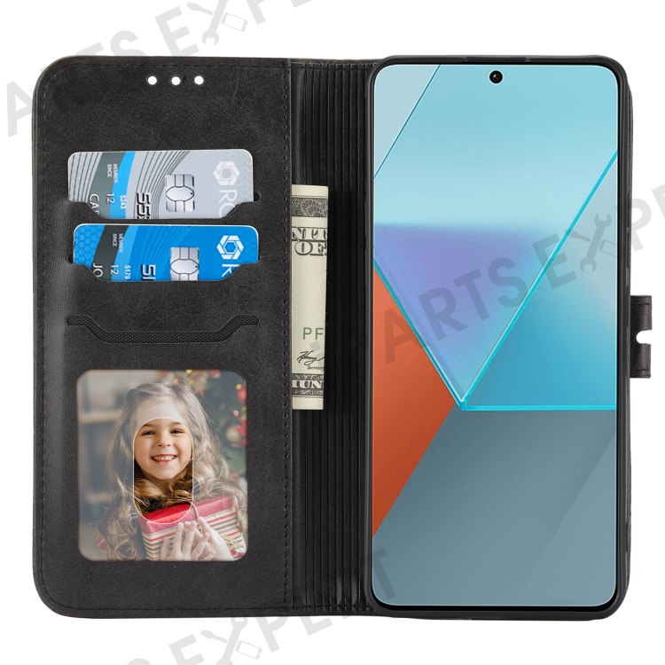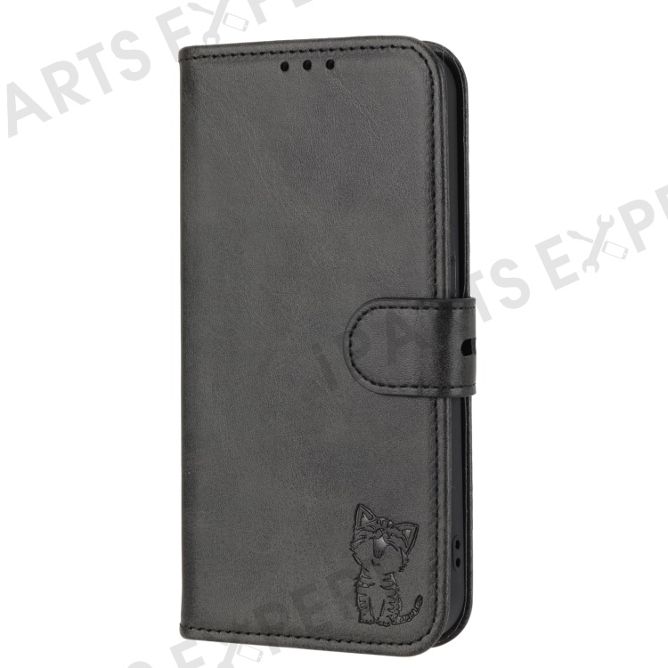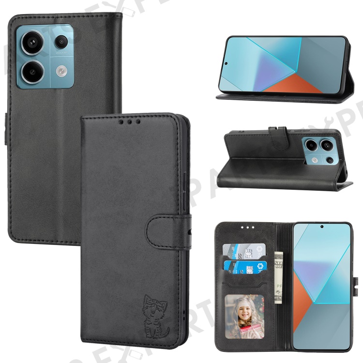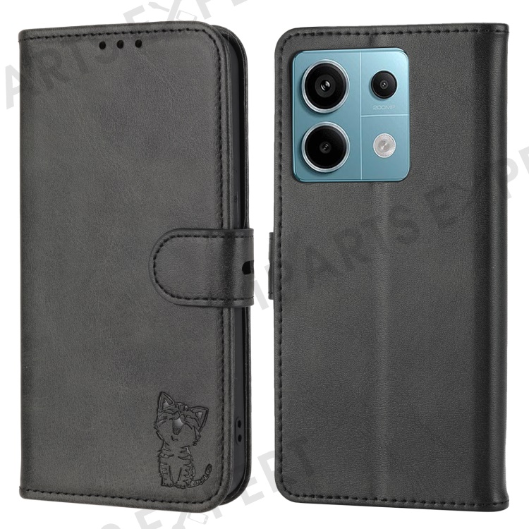 For Xiaomi Redmi Note 13 Pro 5G / Poco X6 5G Leather Case Happy Cat Pattern Folding Stand Phone Cover - Black