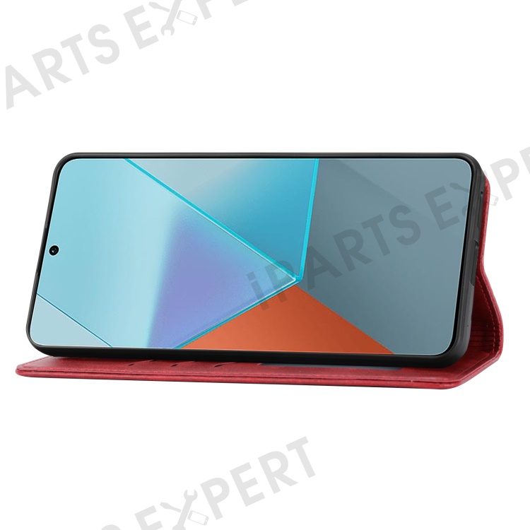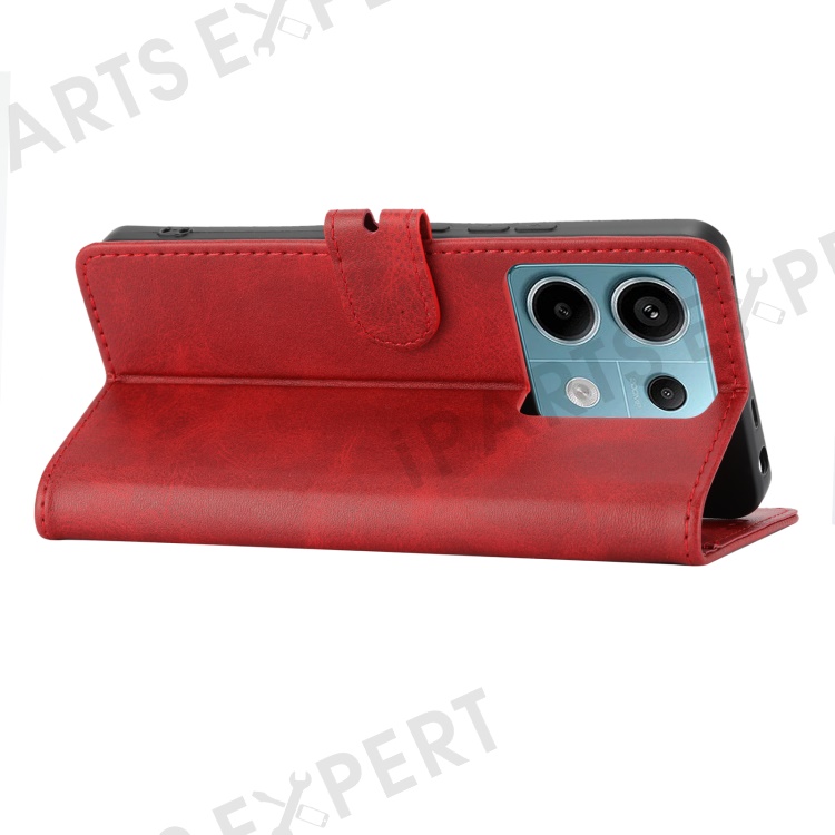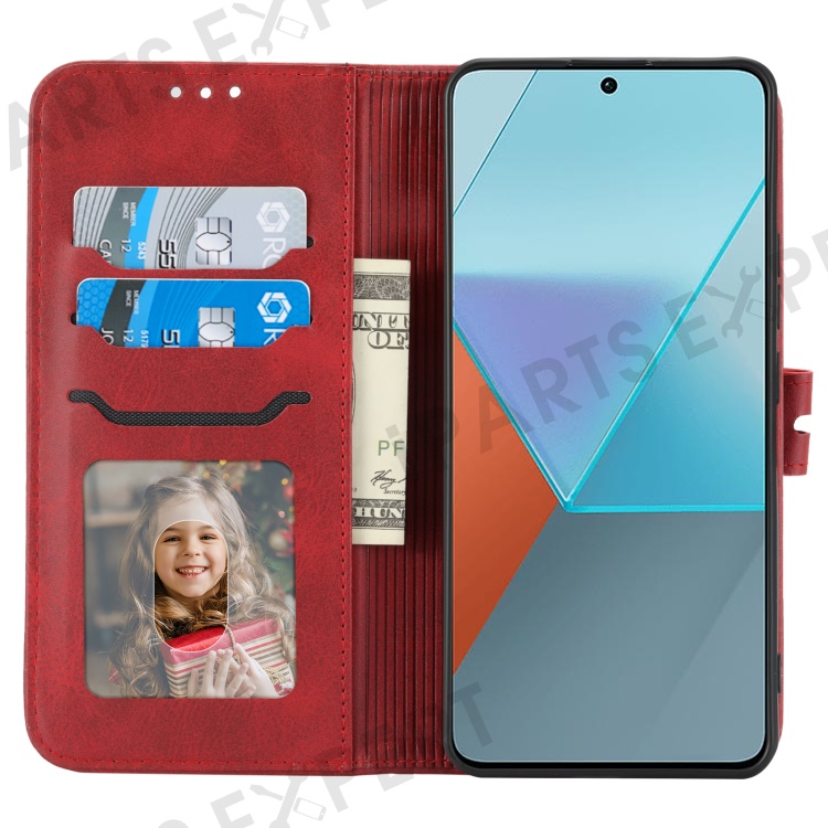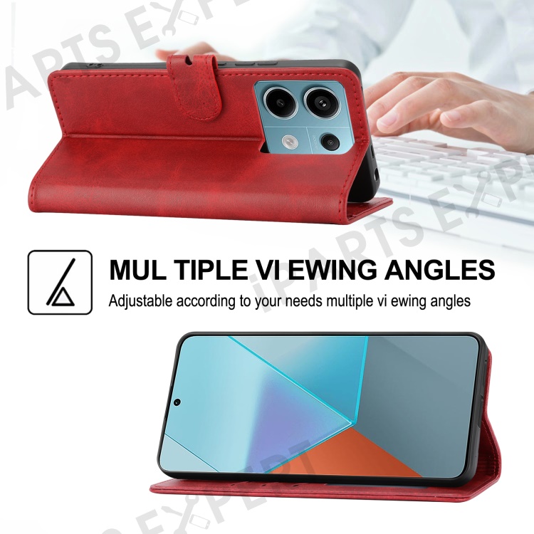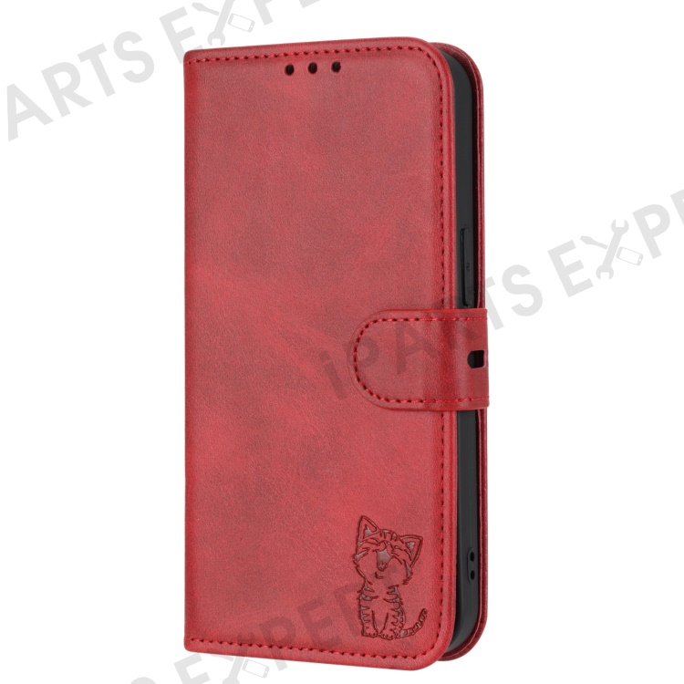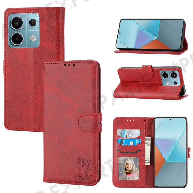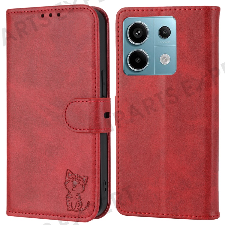 For Xiaomi Redmi Note 13 Pro 5G / Poco X6 5G Leather Case Happy Cat Pattern Folding Stand Phone Cover - Red