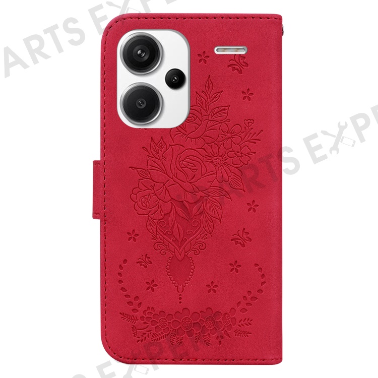 For Xiaomi Redmi Note 13 Pro+ 5G Magnetic Phone Case Rose Butterfly Imprinted Cover - Red