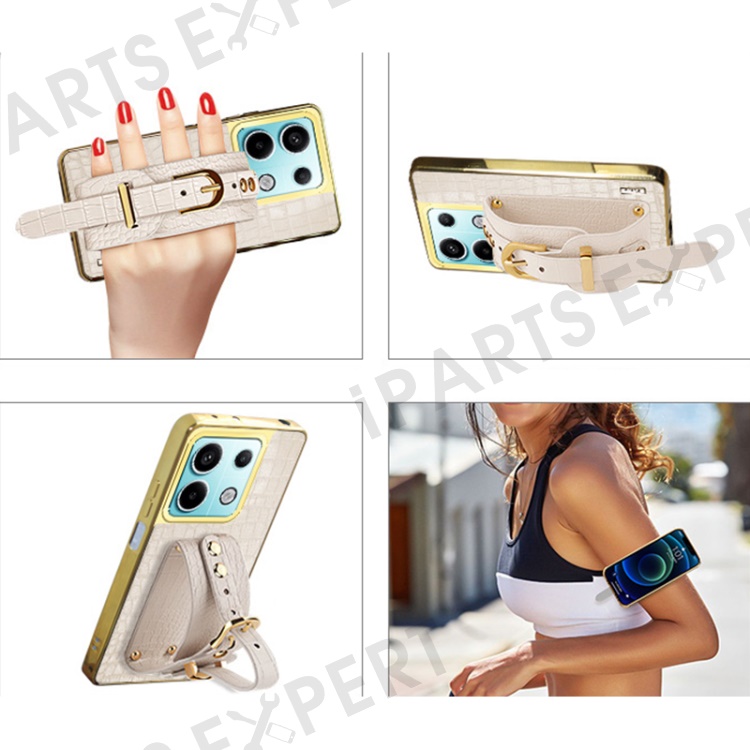 For Xiaomi Redmi Note 13 Pro 5G / Poco X6 5G Case Leather+TPU Anti-scratch Phone Cover with Wristband - Red