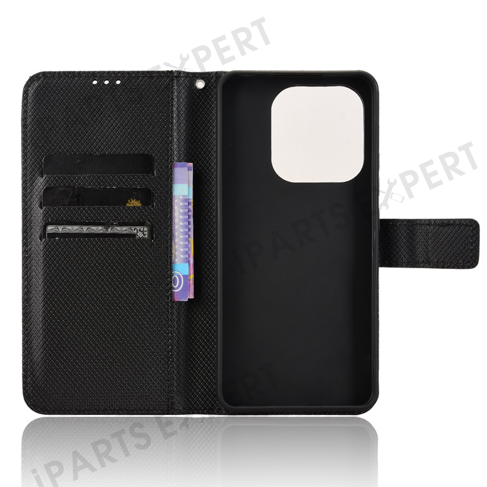 For Xiaomi Redmi Note 14 4G (163.25mm) Case PU Leather Diamond Texture Wallet Phone Cover - Black