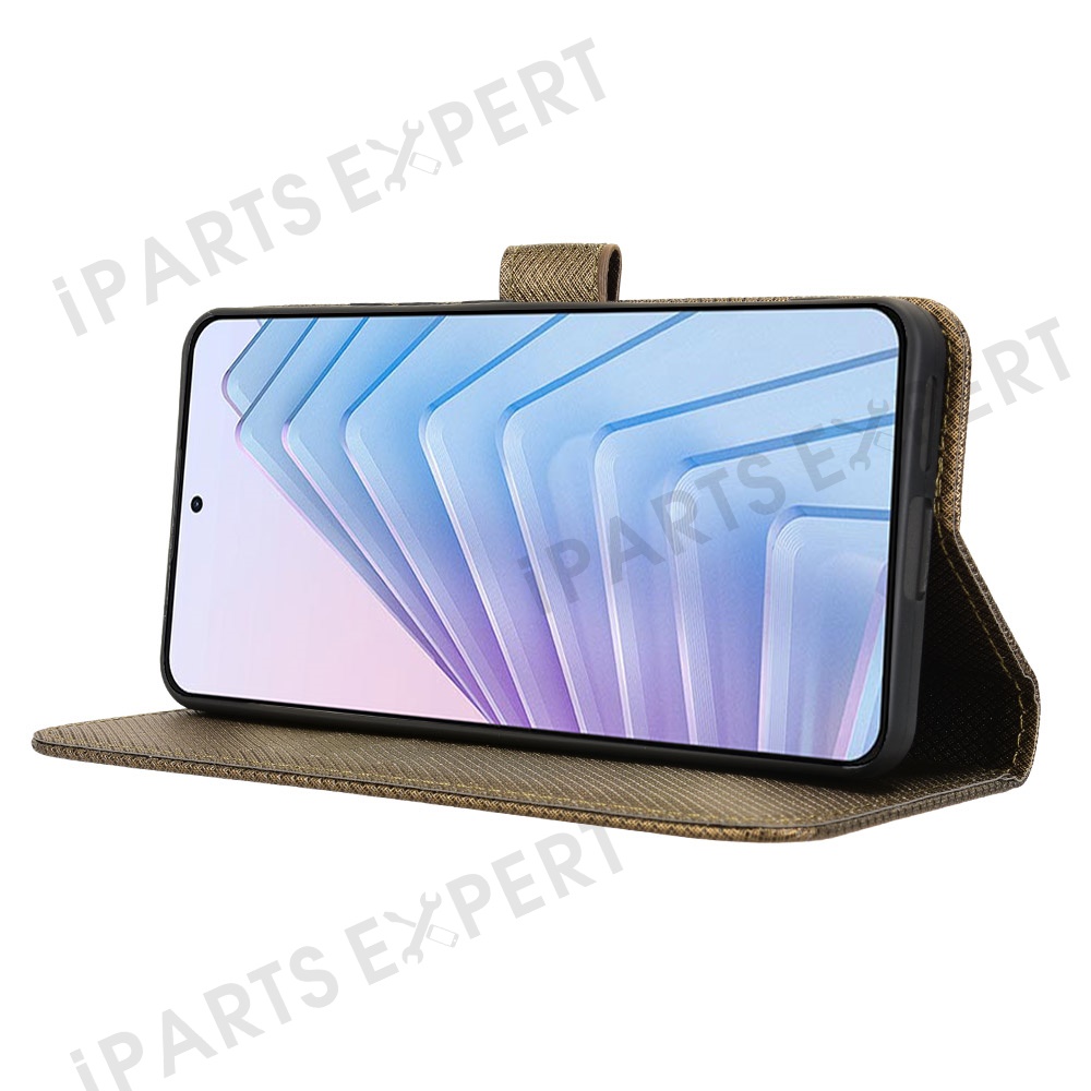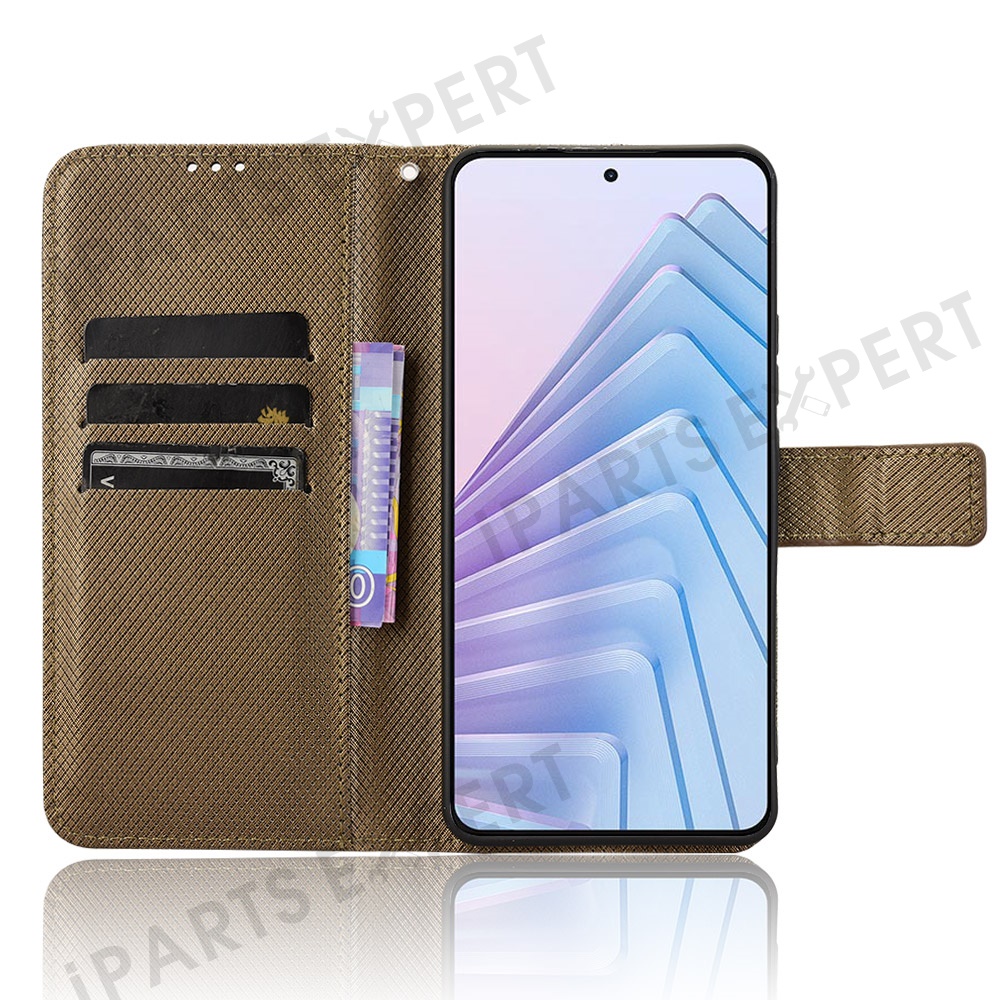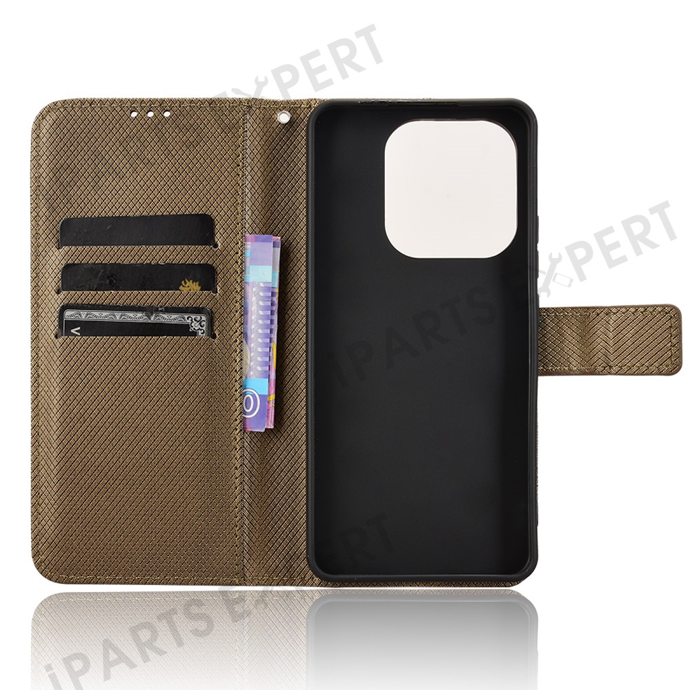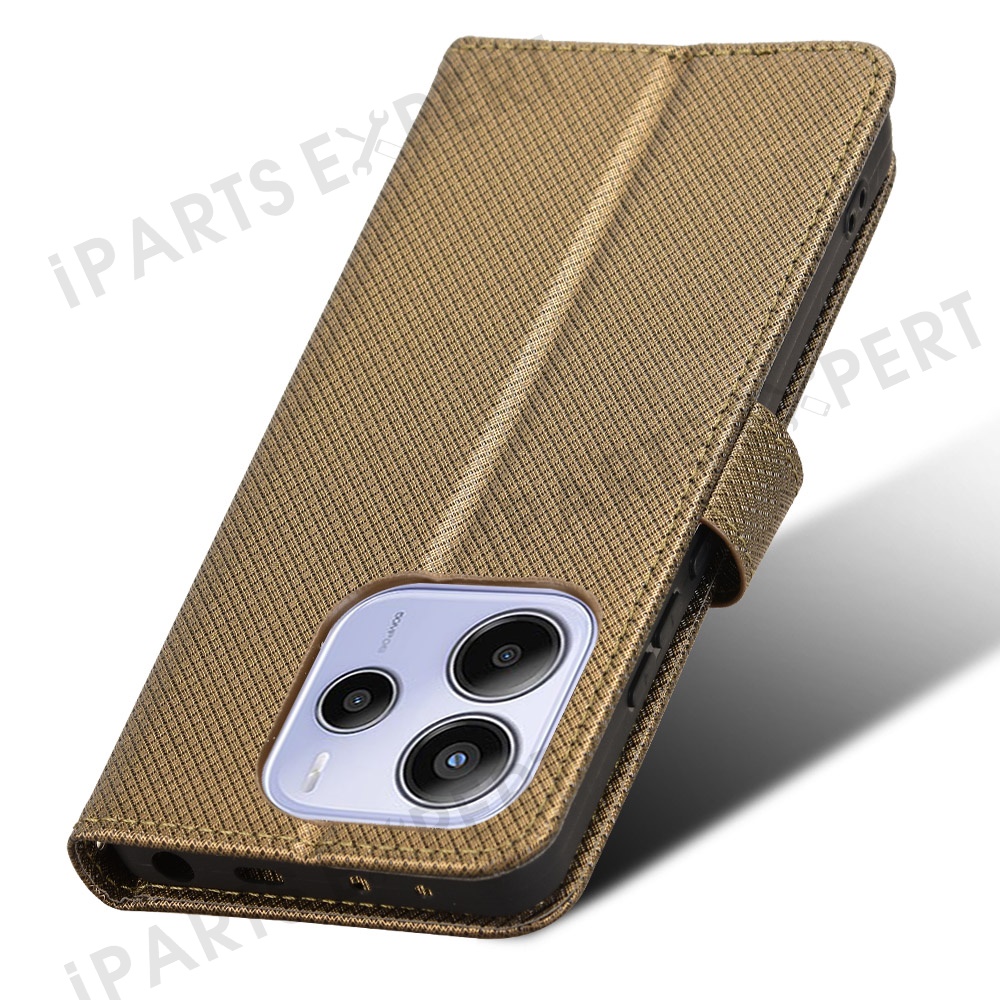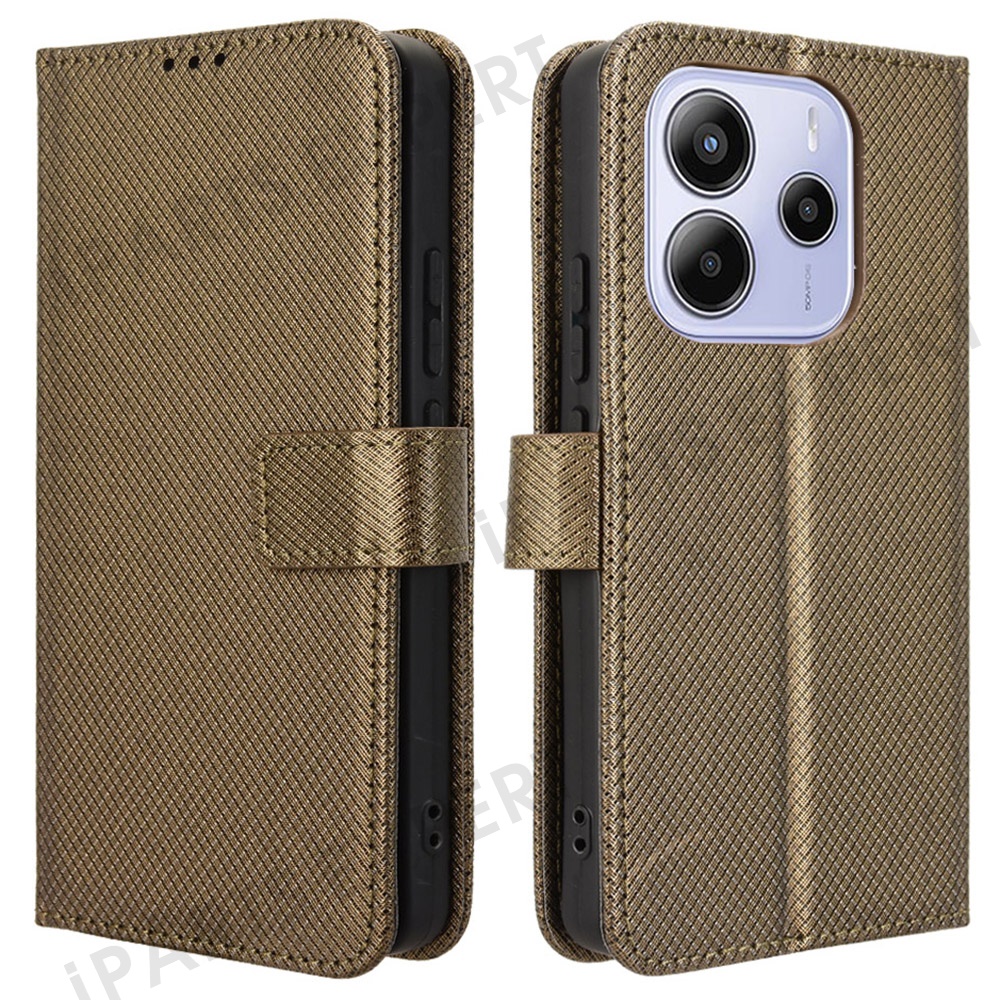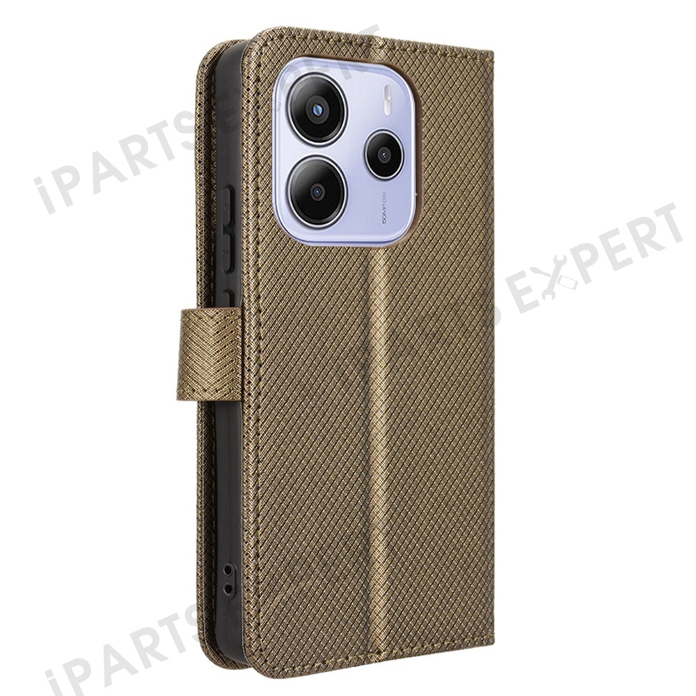 For Xiaomi Redmi Note 14 4G (163.25mm) Case PU Leather Diamond Texture Wallet Phone Cover - Brown