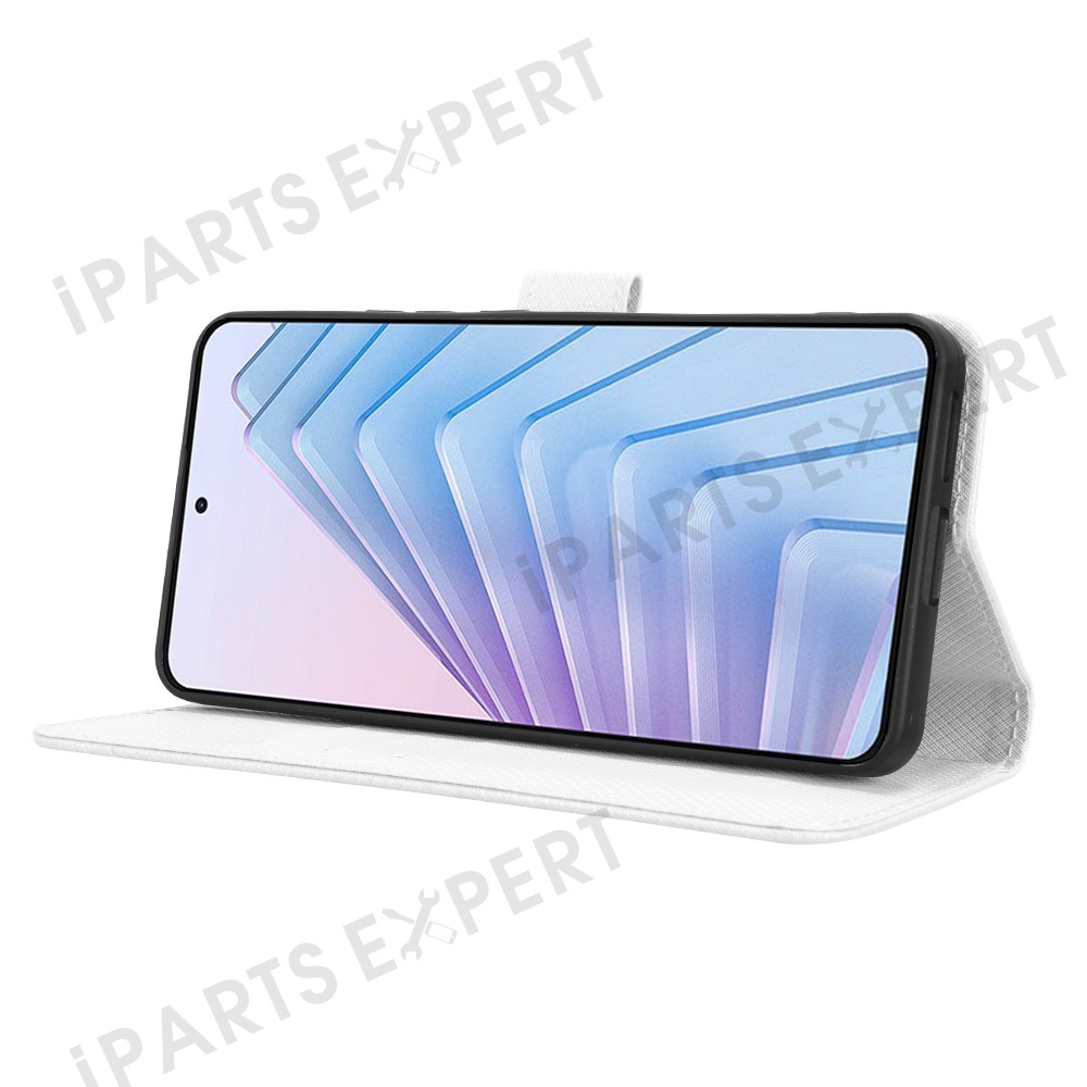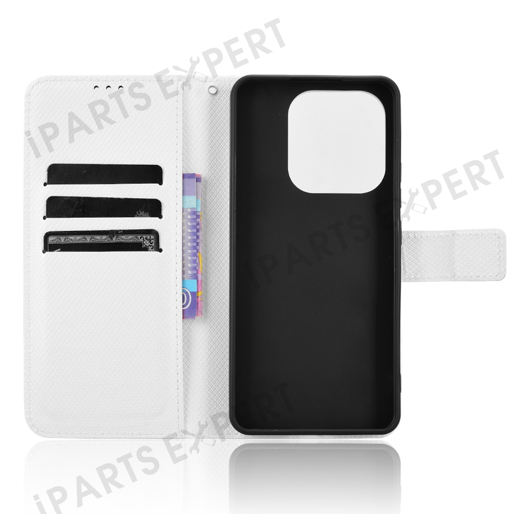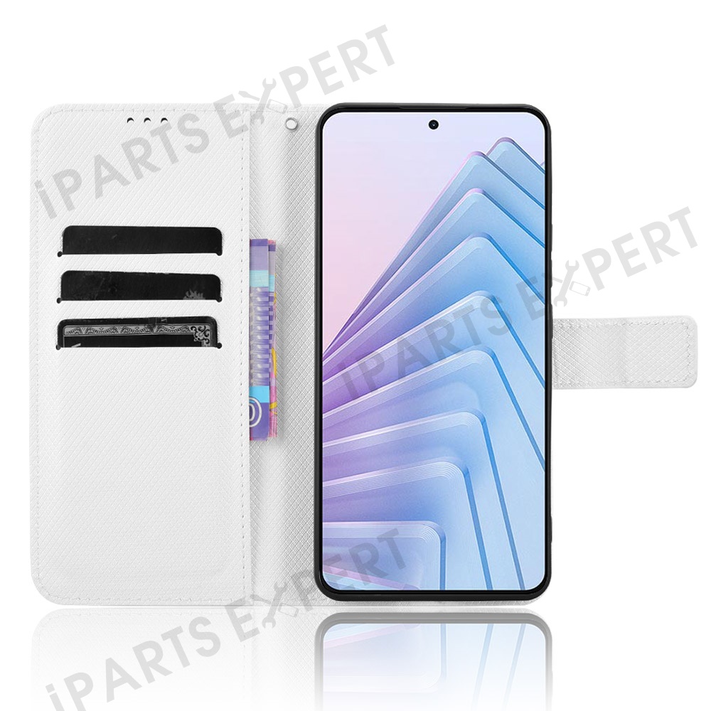 For Xiaomi Redmi Note 14 4G (163.25mm) Case PU Leather Diamond Texture Wallet Phone Cover - White