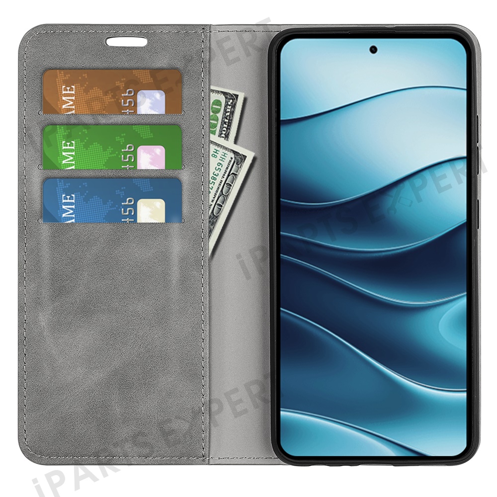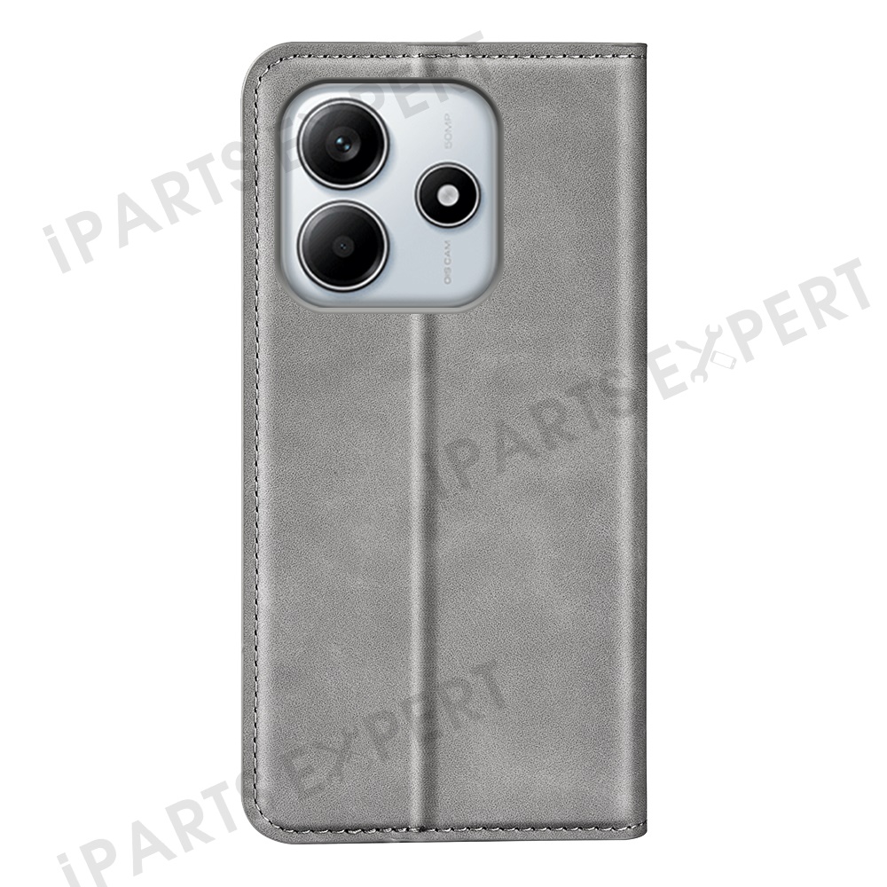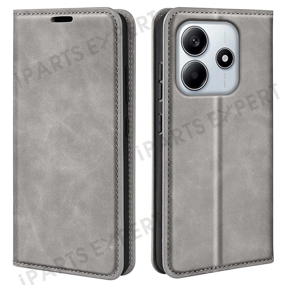 For Xiaomi Redmi Note 14 4G (163.25mm) Case Skin Touch Leather Wallet Phone Cover - Grey