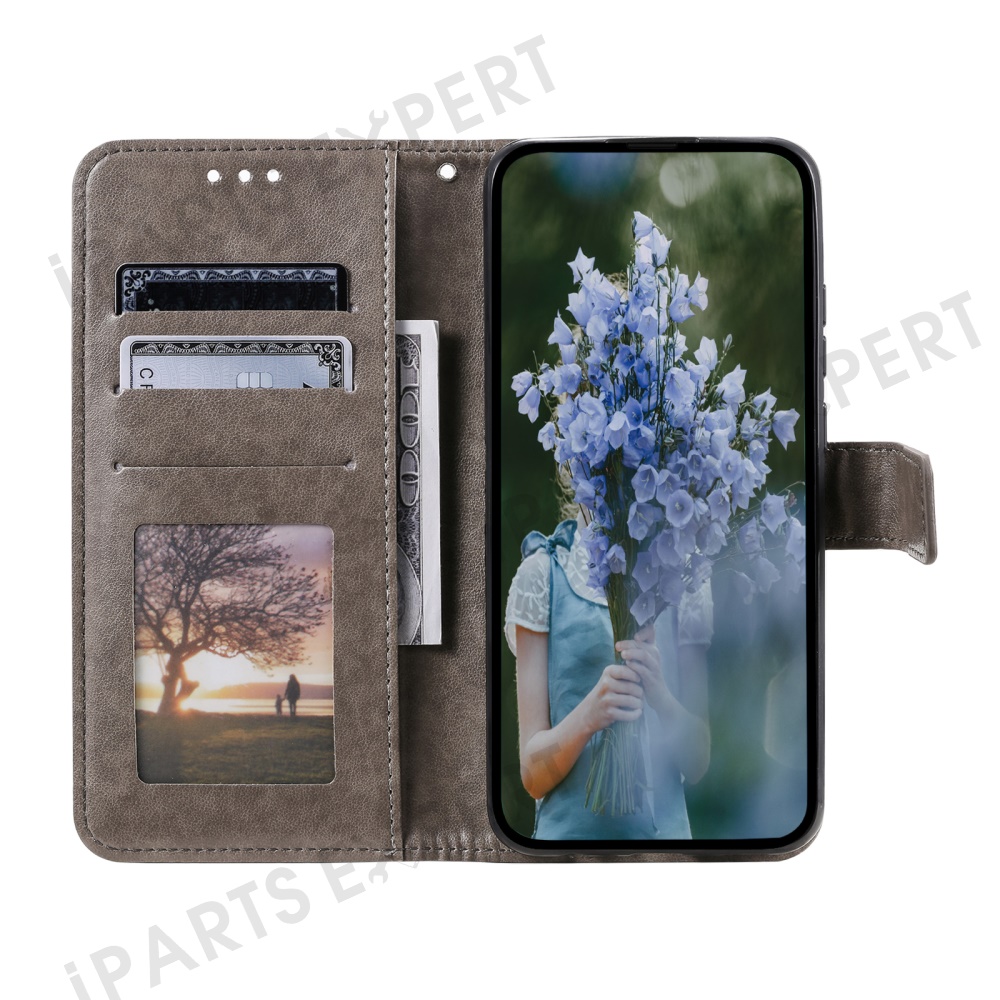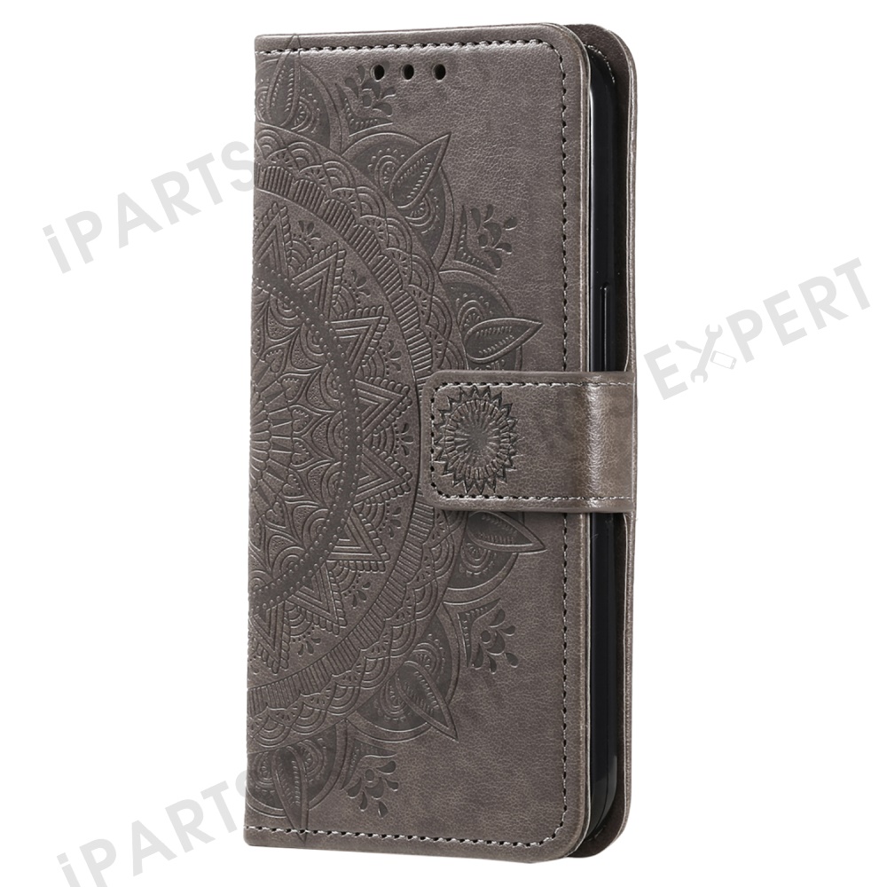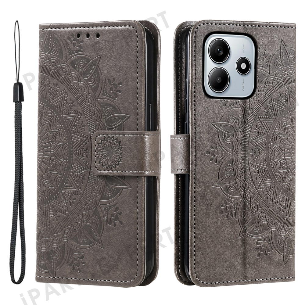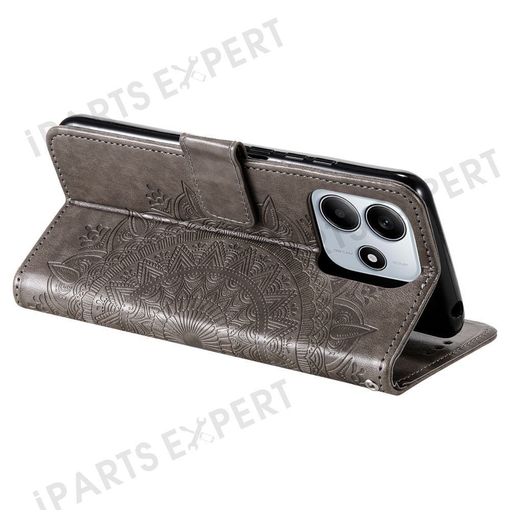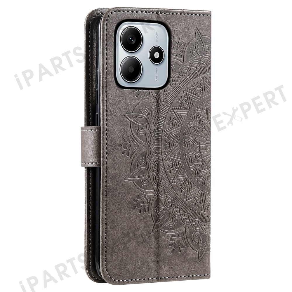 For Xiaomi Redmi Note 14 4G (163.25mm) Stand Case Imprinted Totem PU Leather Wallet Phone Cover - Grey