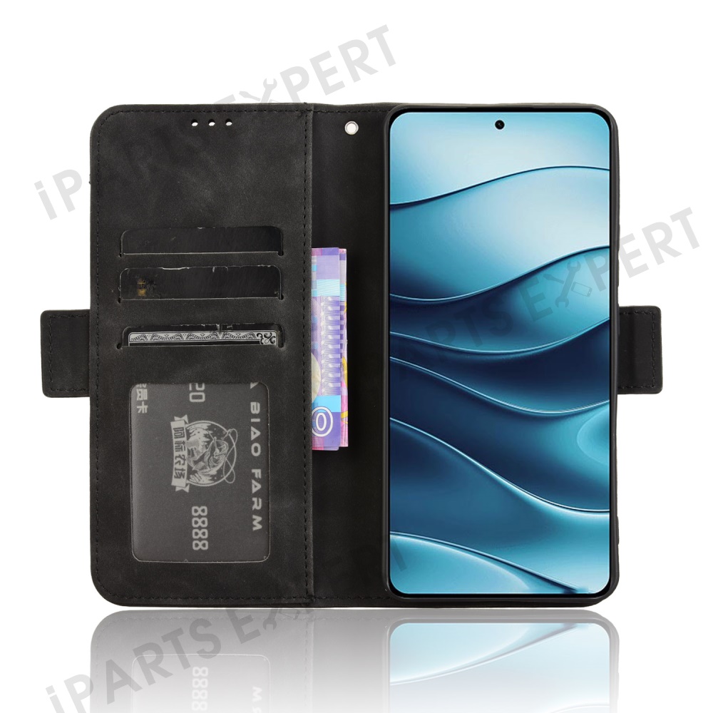 For Xiaomi Redmi Note 14 5G Leather Case Phone Wallet Cover with Multiple Card Slots - Black