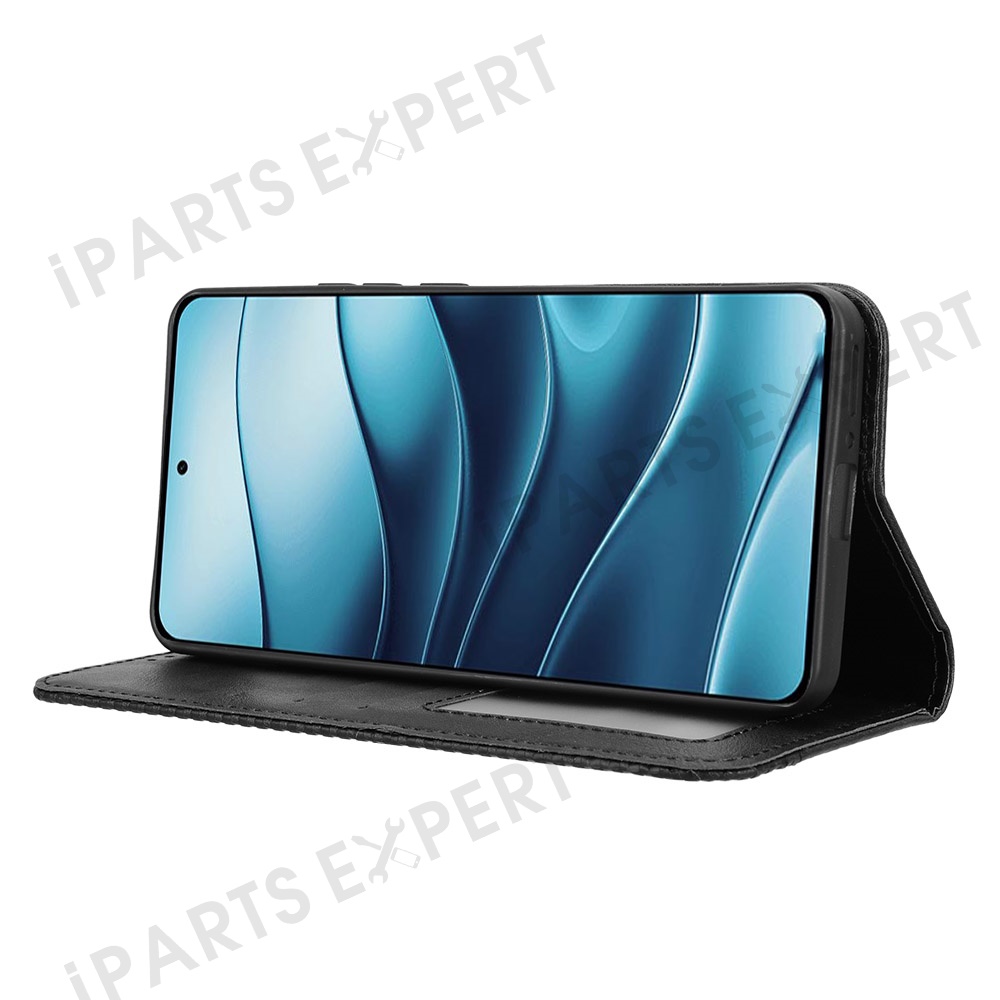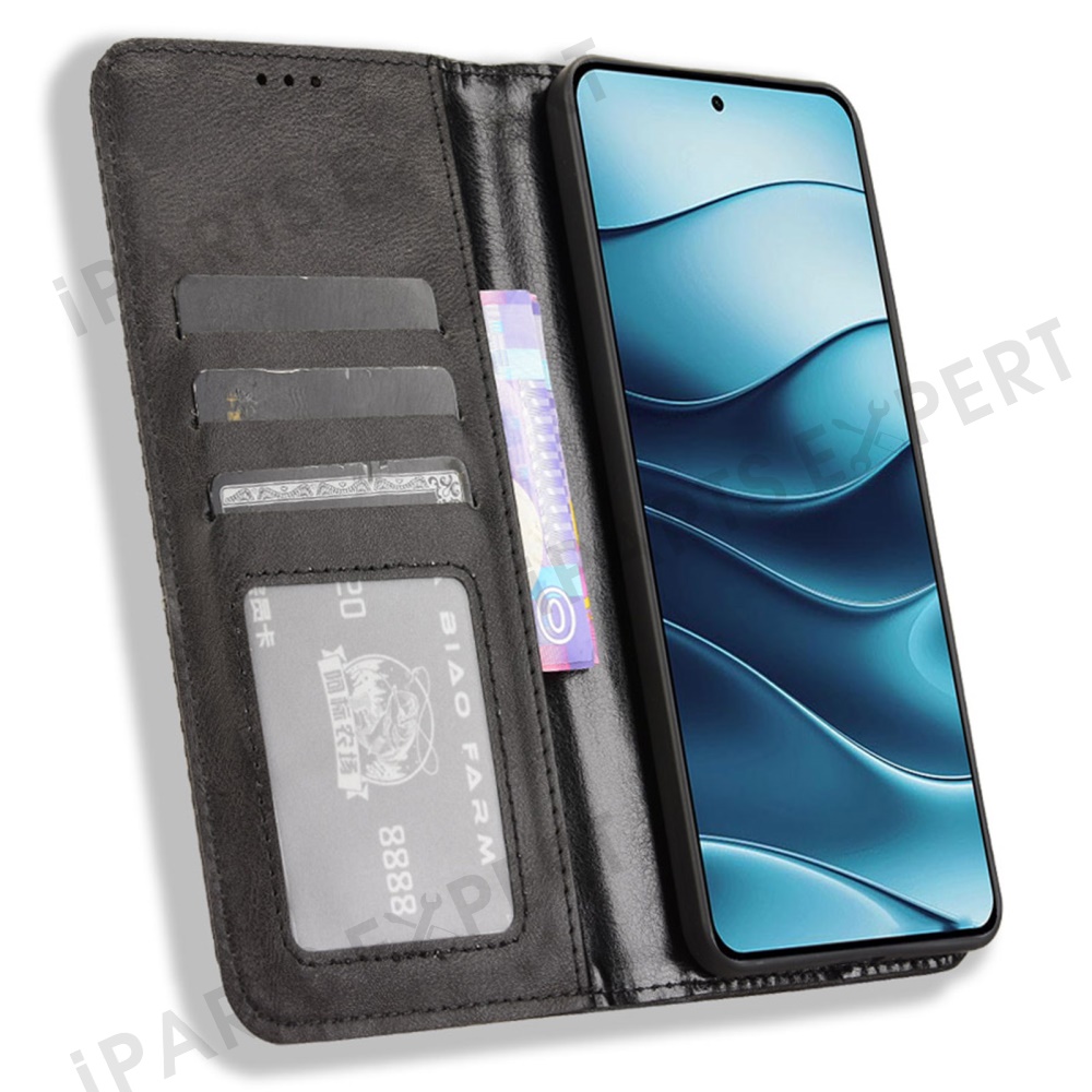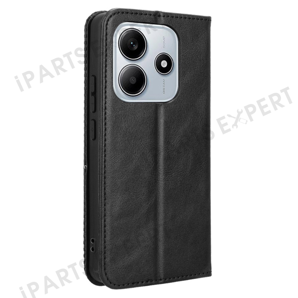 For Xiaomi Redmi Note 14 5G Leather Case Wallet Stand Retro Texture Phone Cover - Black