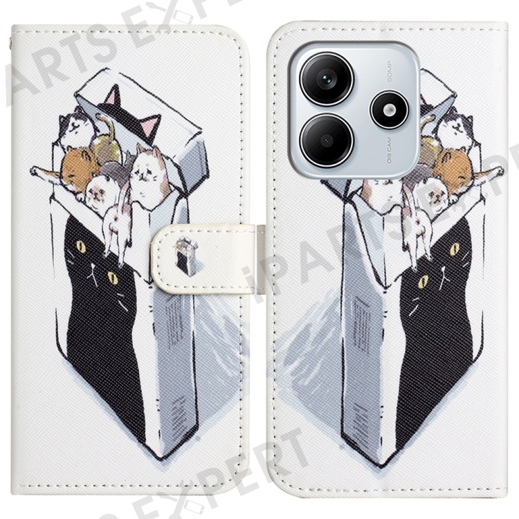 For Xiaomi Redmi Note 14 5G Case Pattern Print PU Leather Wallet Phone Cover Cross Texture - Cats