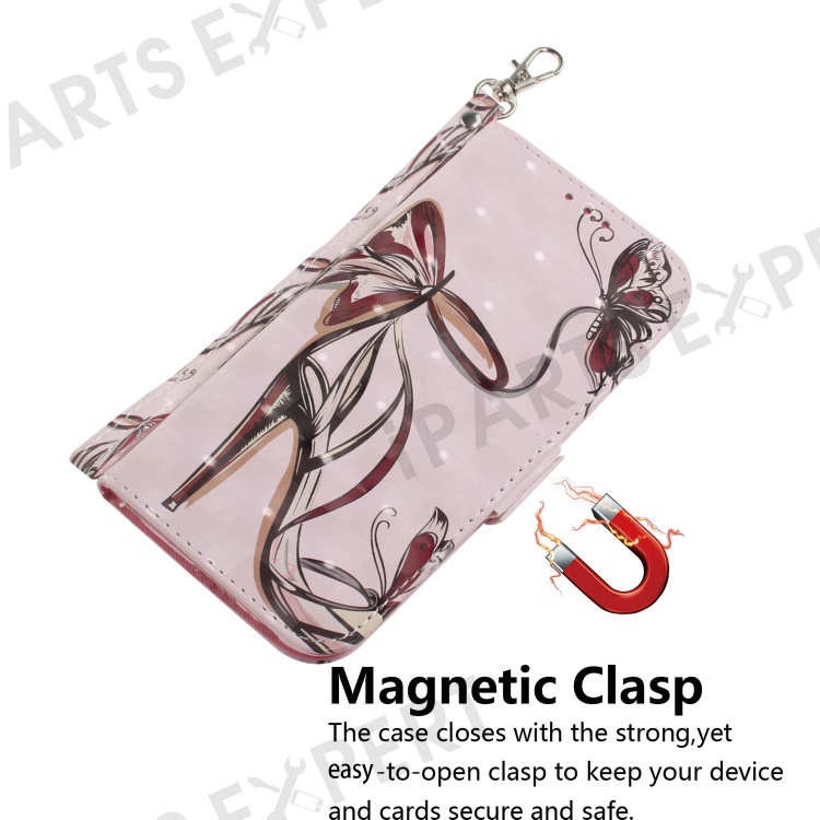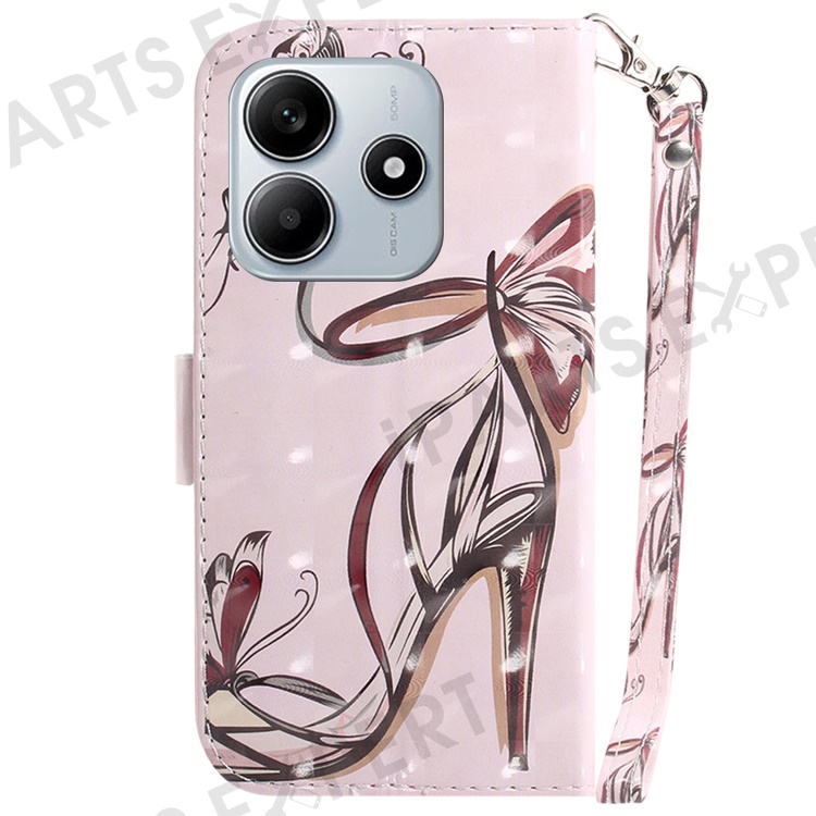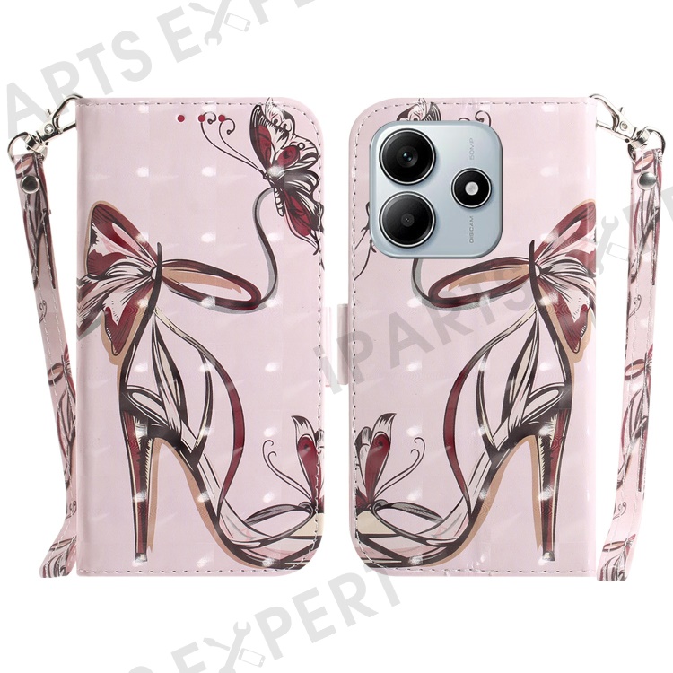 For Xiaomi Redmi Note 14 5G Case Pattern Printing Leather Wallet Phone Cover with Wrist Strap - Butterfly High Heels