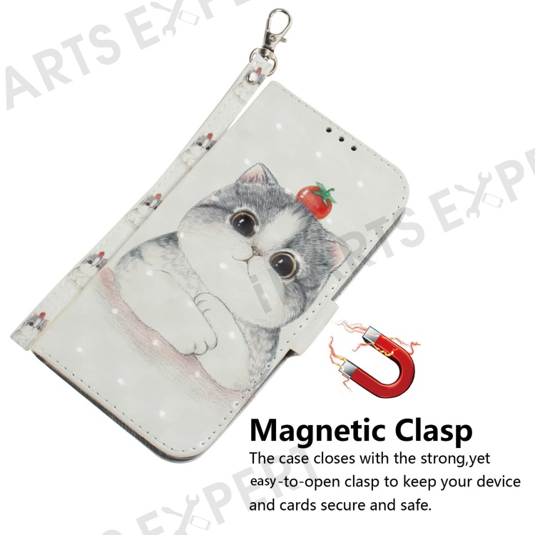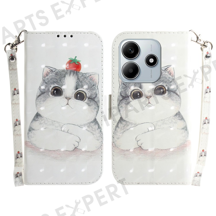 For Xiaomi Redmi Note 14 5G Case Pattern Printing Leather Wallet Phone Cover with Wrist Strap - Cute Cat