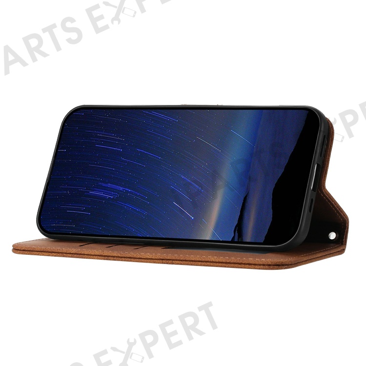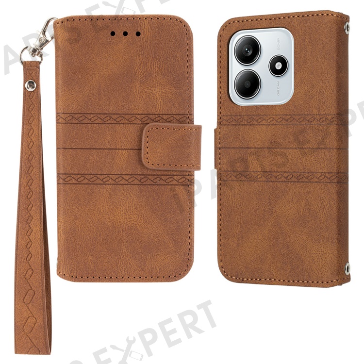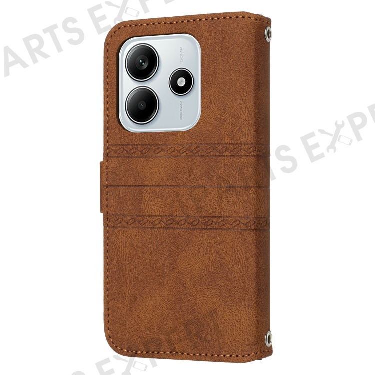 For Xiaomi Redmi Note 14 5G Case Wallet Skin-touch Leather Imprinted Phone Cover - Brown