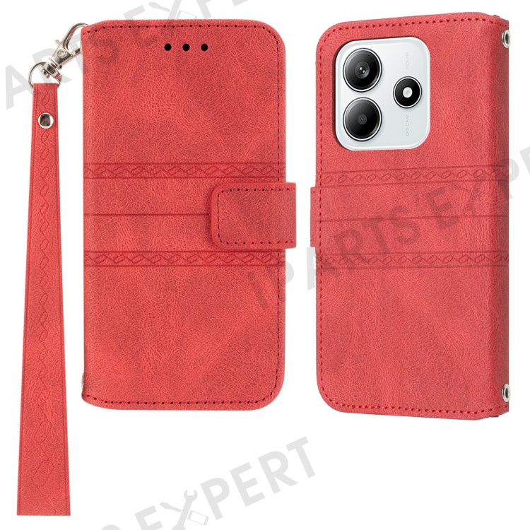 For Xiaomi Redmi Note 14 5G Case Wallet Skin-touch Leather Imprinted Phone Cover - Red