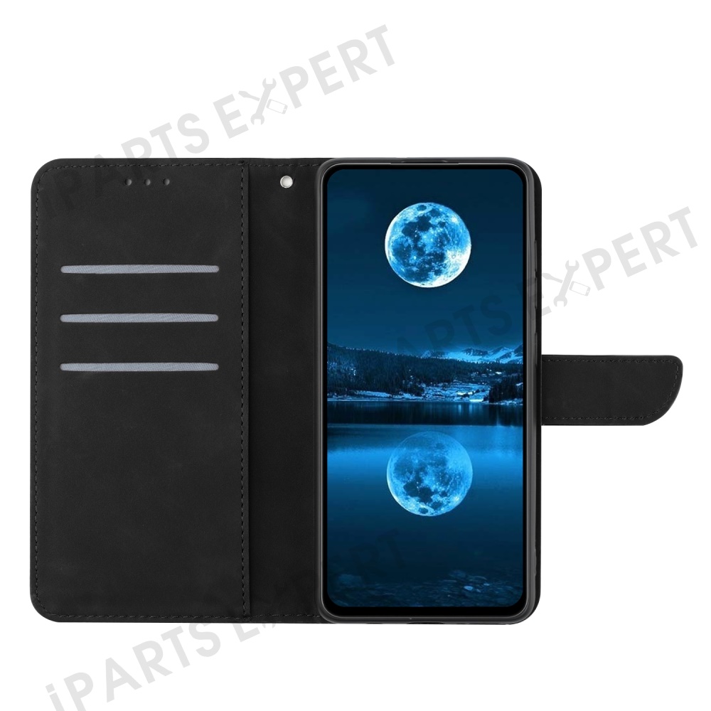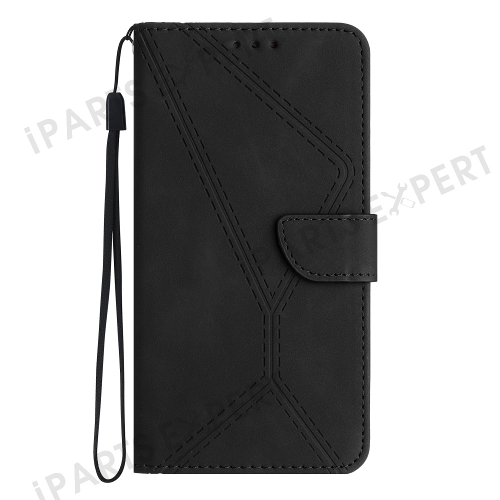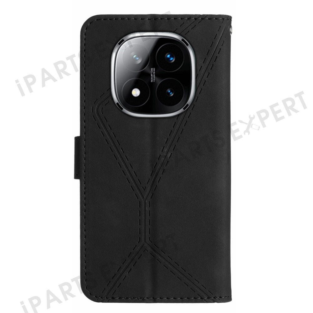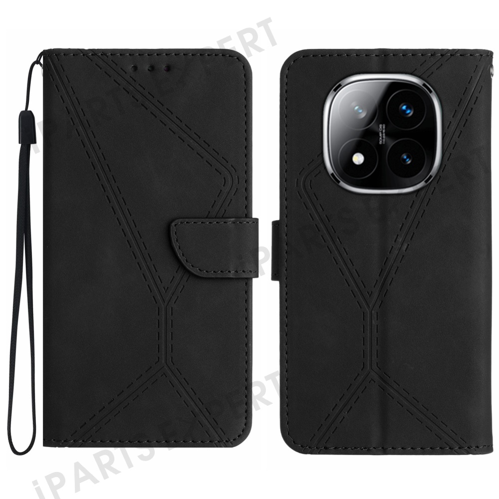 For Xiaomi Redmi Note 14 Pro 4G Case Skin Touch Lines Imprinted PU Leather Flip Phone Cover - Black