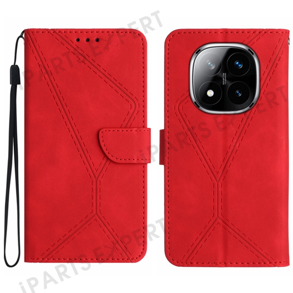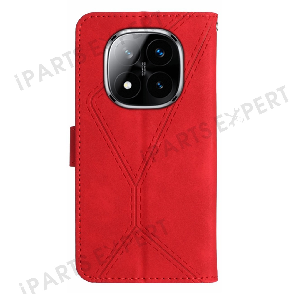 For Xiaomi Redmi Note 14 Pro 4G Case Skin Touch Lines Imprinted PU Leather Flip Phone Cover - Red