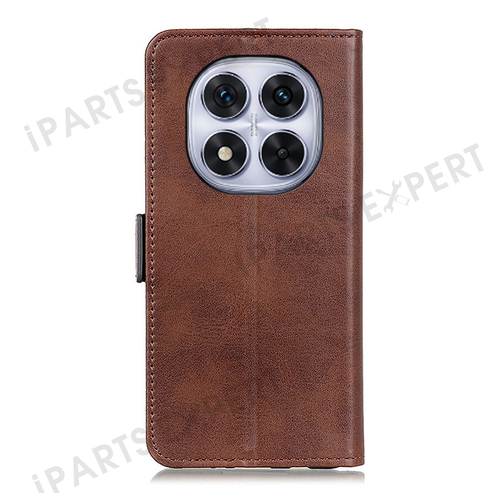 For Xiaomi Redmi Note 14 Pro 4G Case Stand Cowhide Texture PU Leather Phone Cover - Brown